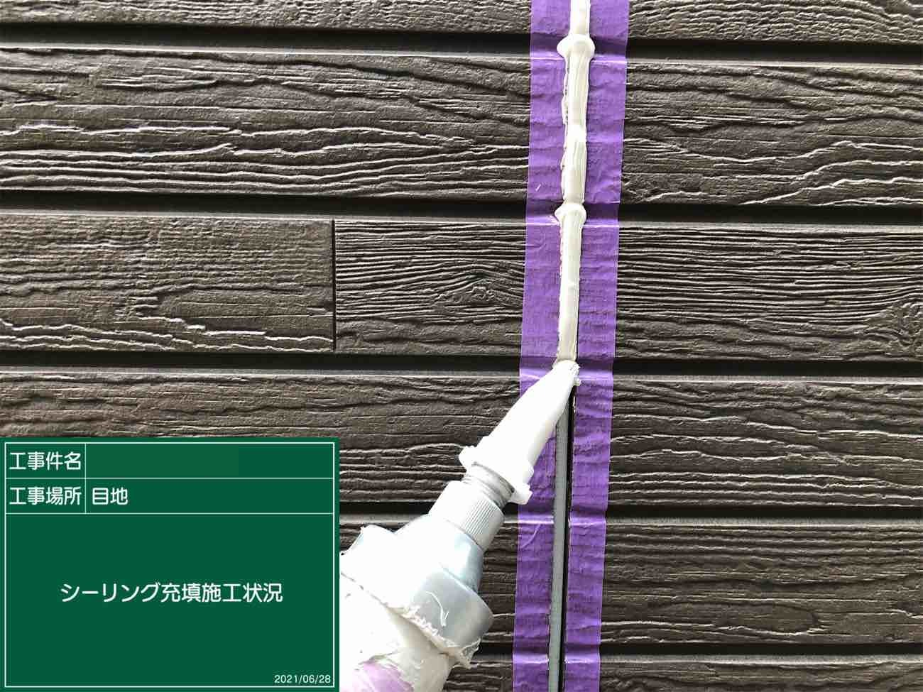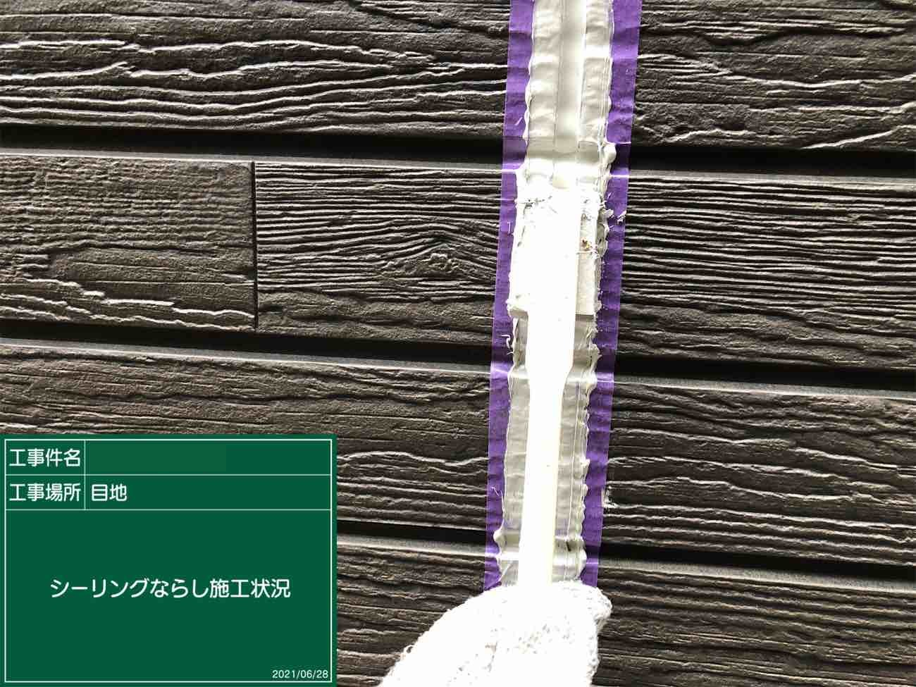 新しく充填したシーリング材を綺麗にならしていきます。 これが仕上げ作業です。
