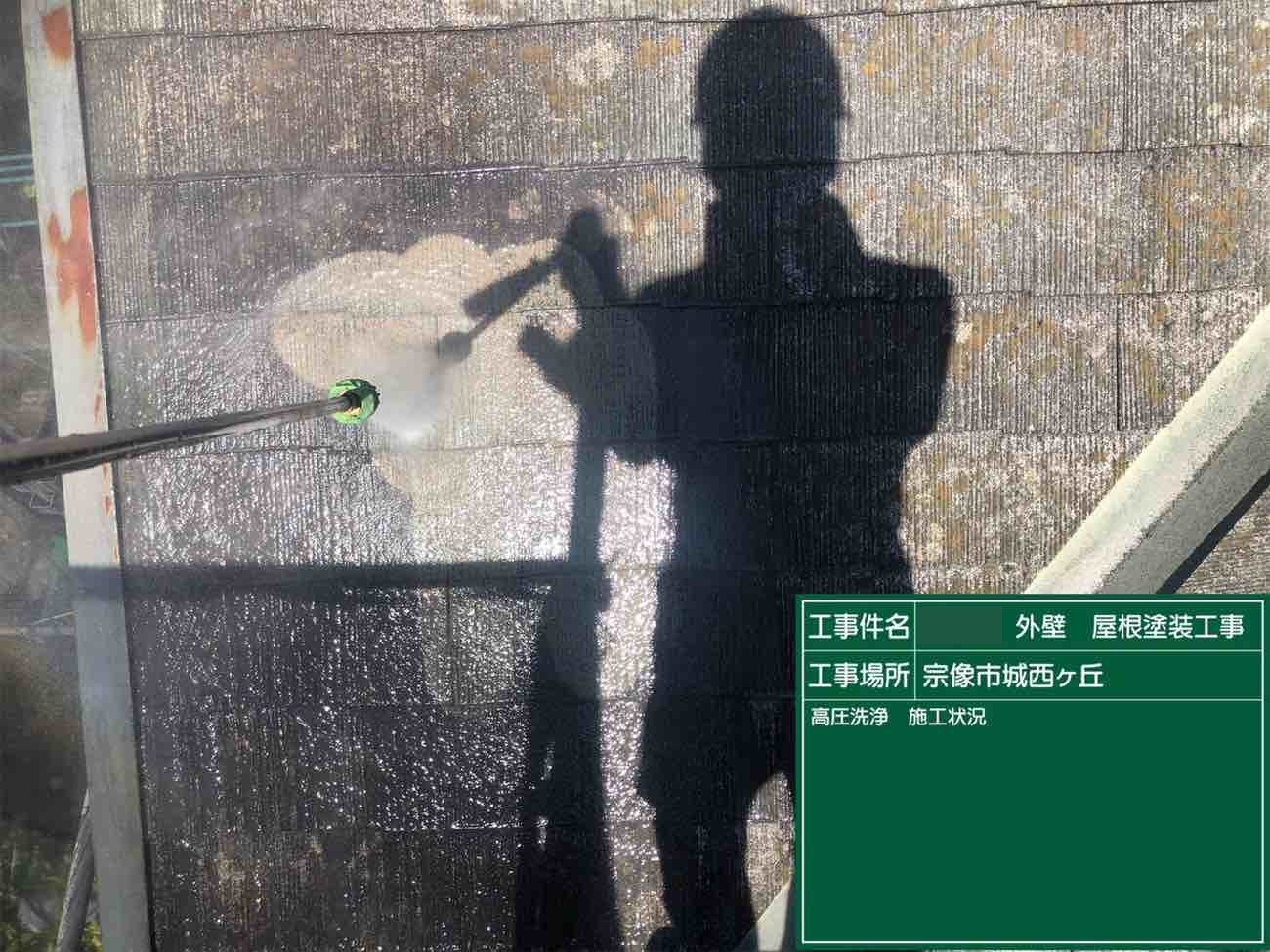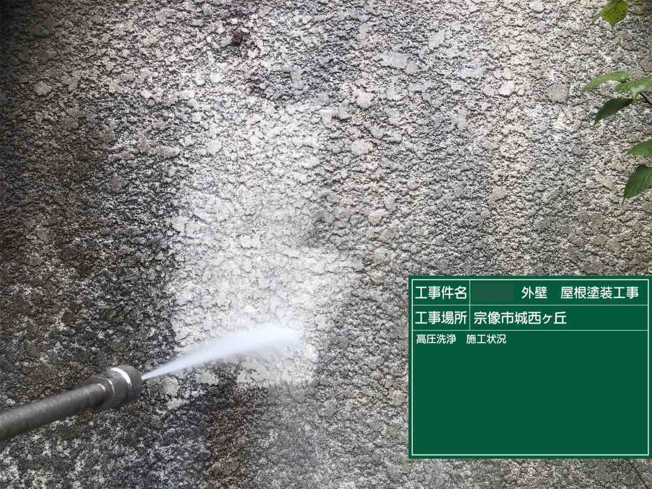 外壁も同じように高圧洗浄機できれいに洗浄していきます。