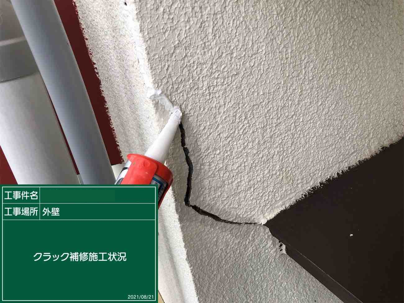 塗料を塗っていく前にクラックを補修していきます。