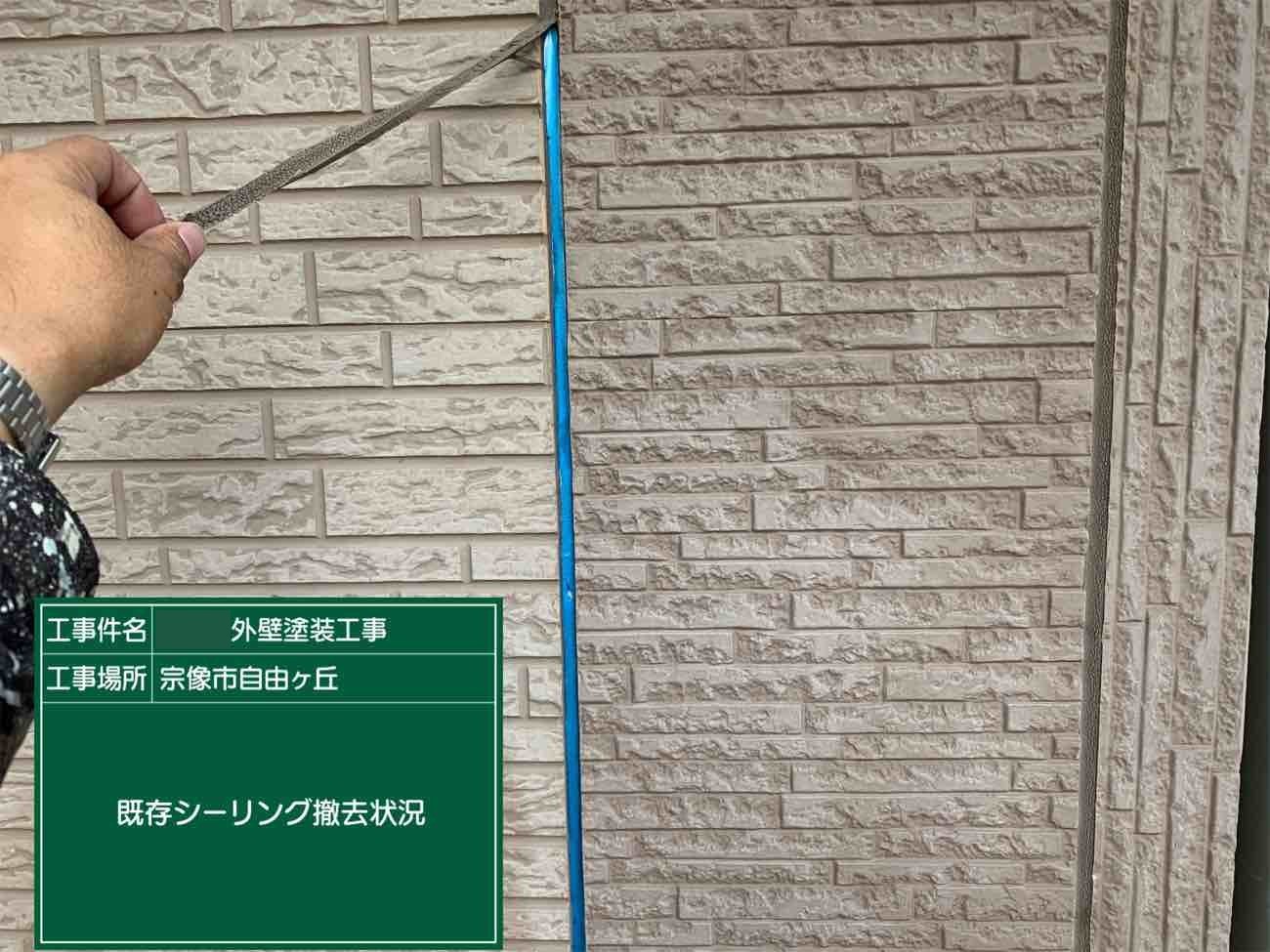 洗浄が完了し乾燥したら、サイディングボードの継ぎ目にある既存のシーリングを撤去していきます。