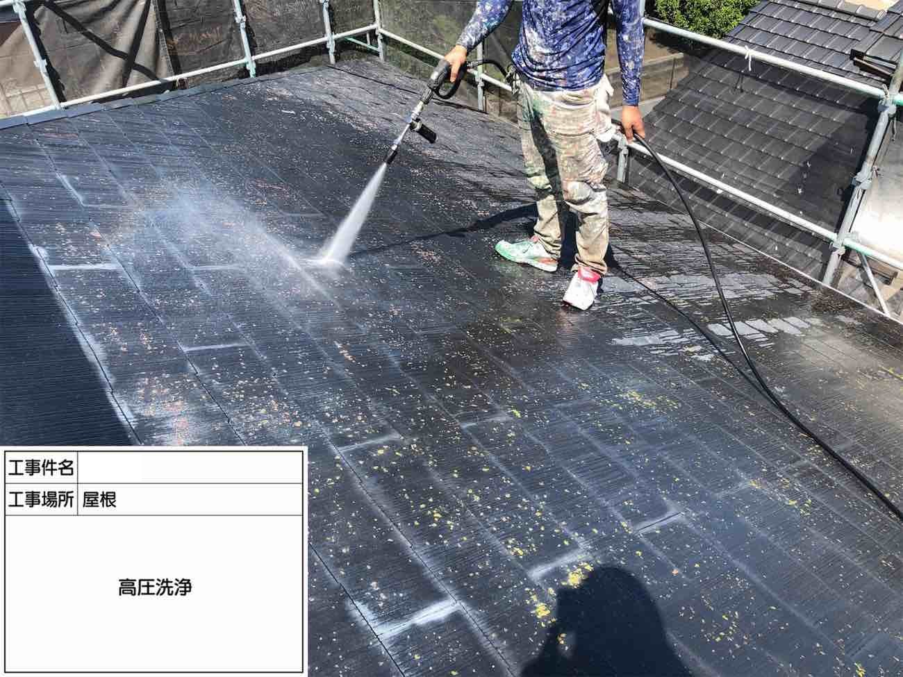 まずは高圧洗浄を行い小さな汚れまで落としていきます。
