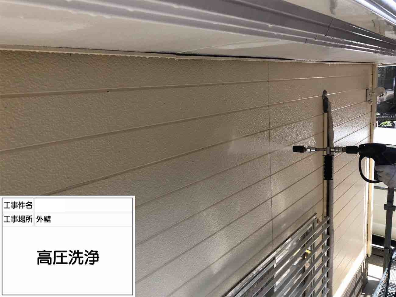 続いて外壁も高圧洗浄を行い綺麗にしていきます。
