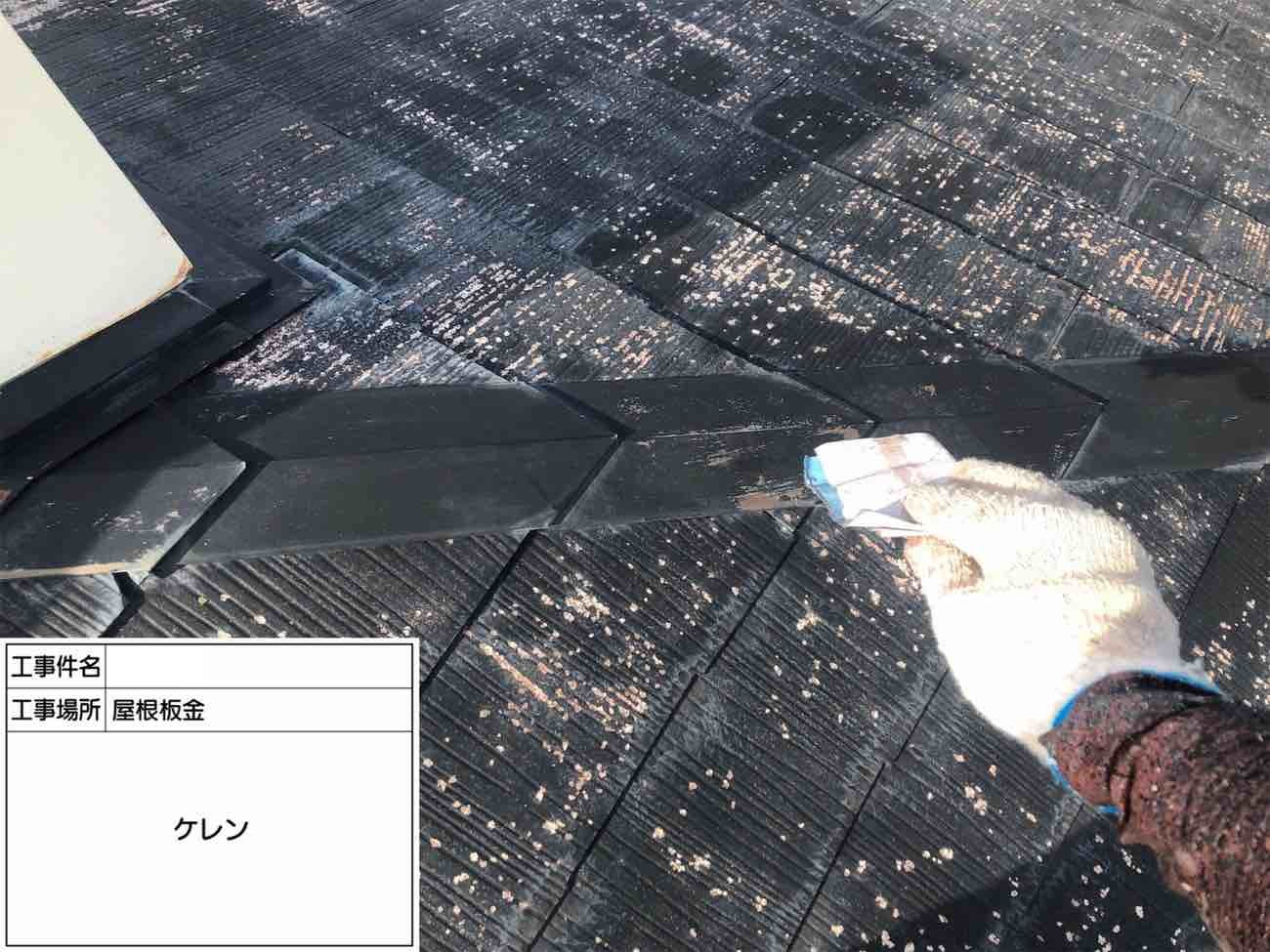 屋根板金のケレン作業を行っていきます。 ケレンを行うことで塗る面を整え、塗料の付着をよくしてくれます。
