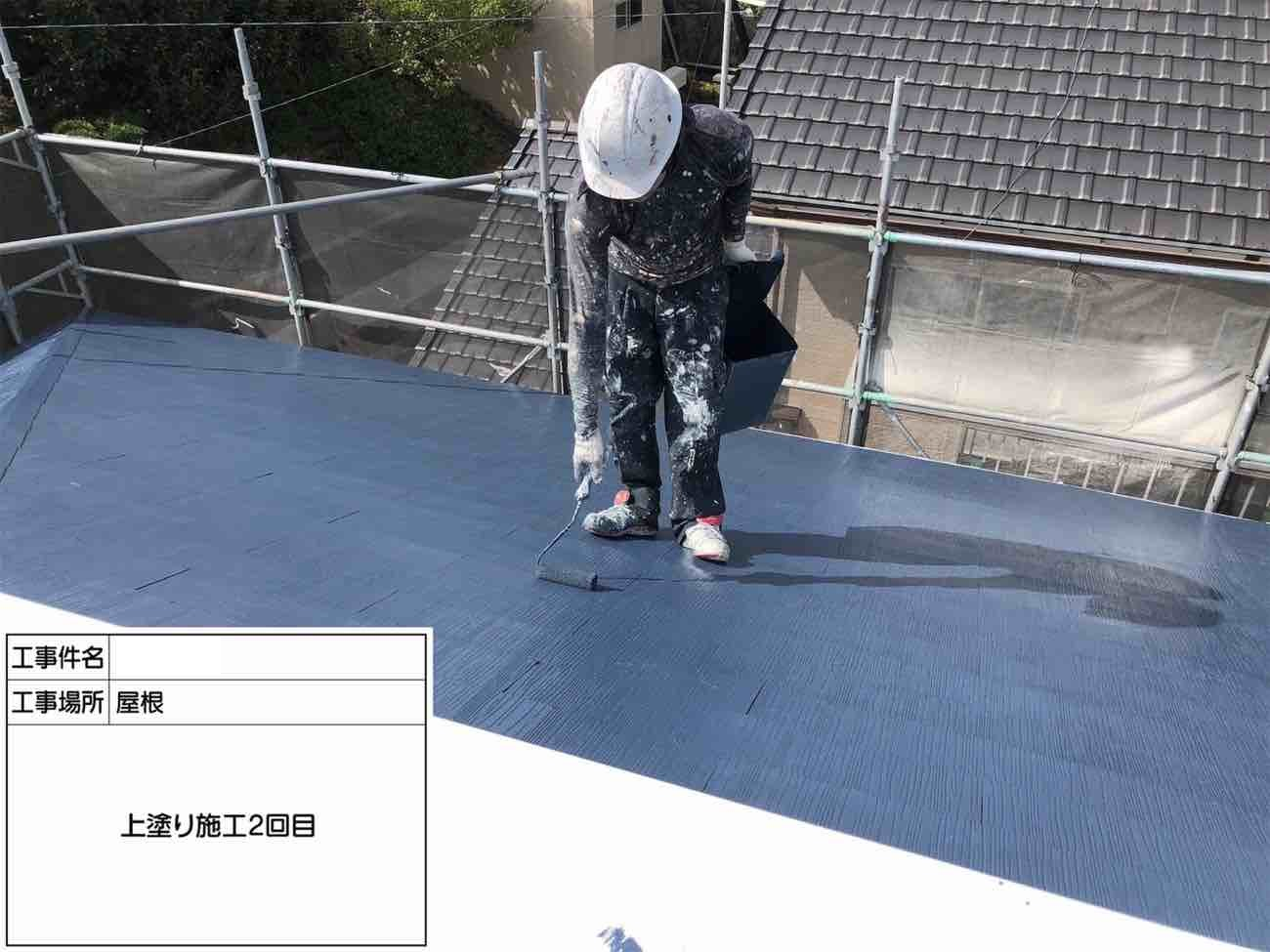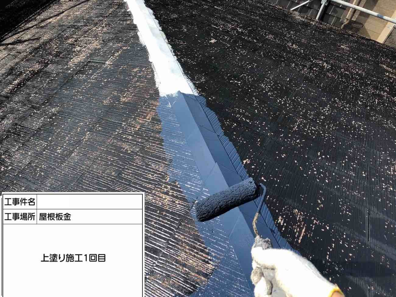 上塗りです。この工程で屋根板金は完了です。