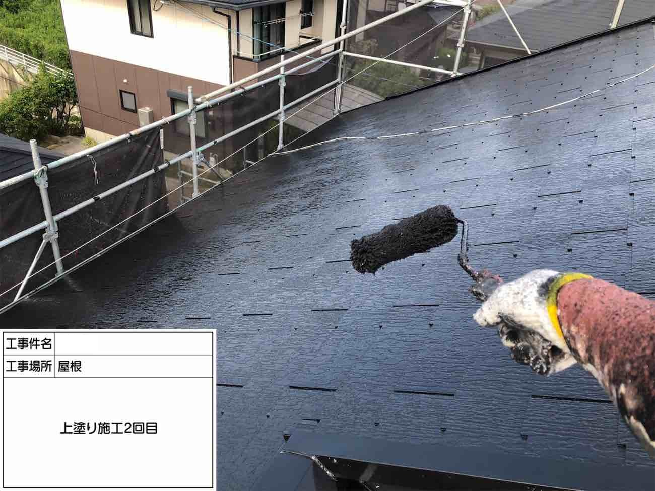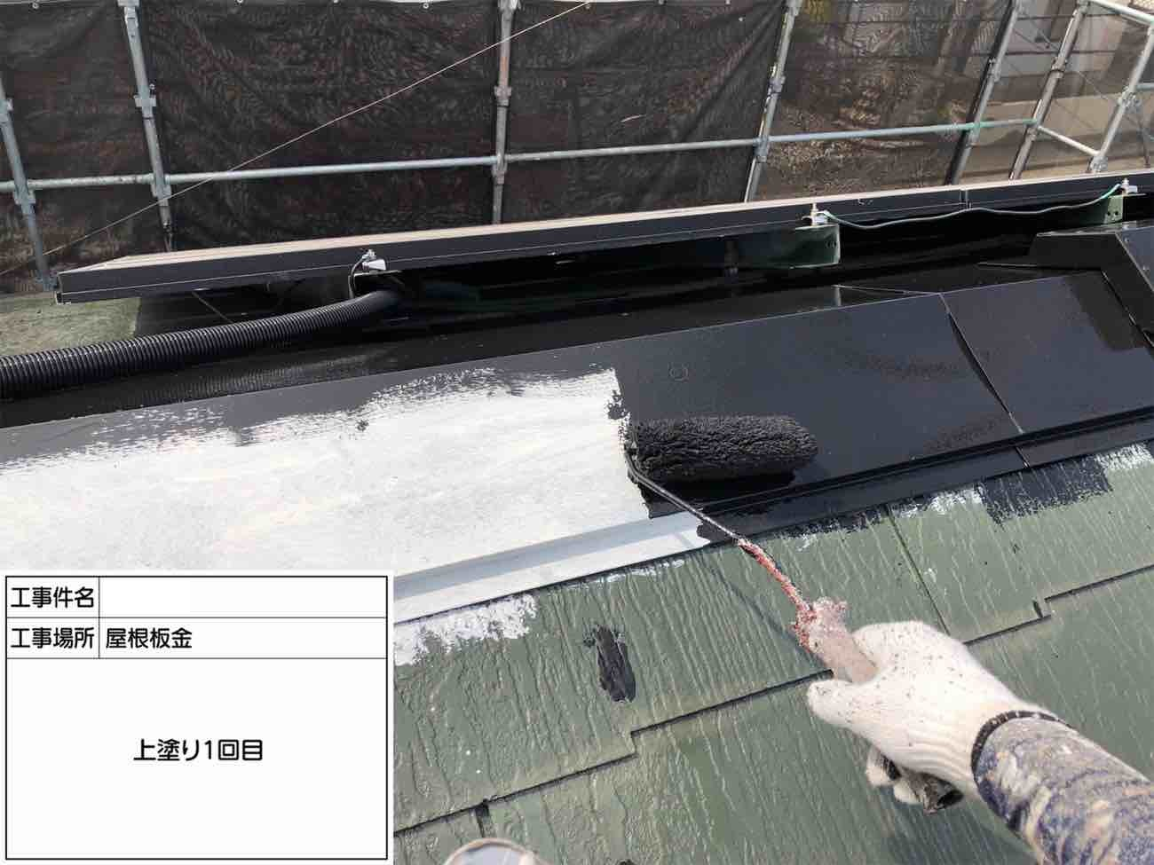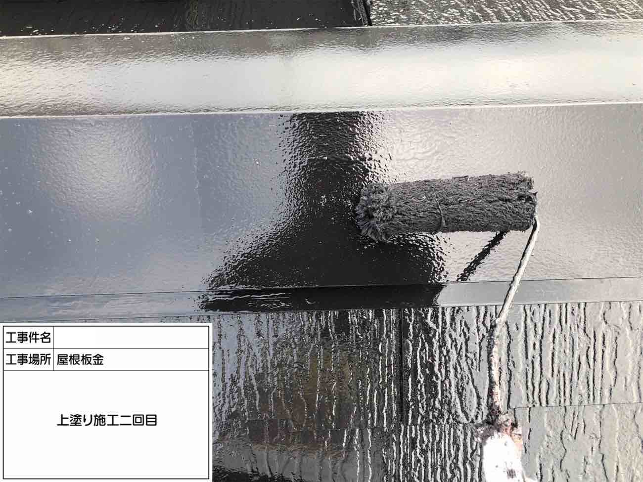上塗り2回目も丁寧に屋根板金に塗膜を重ねていきます。