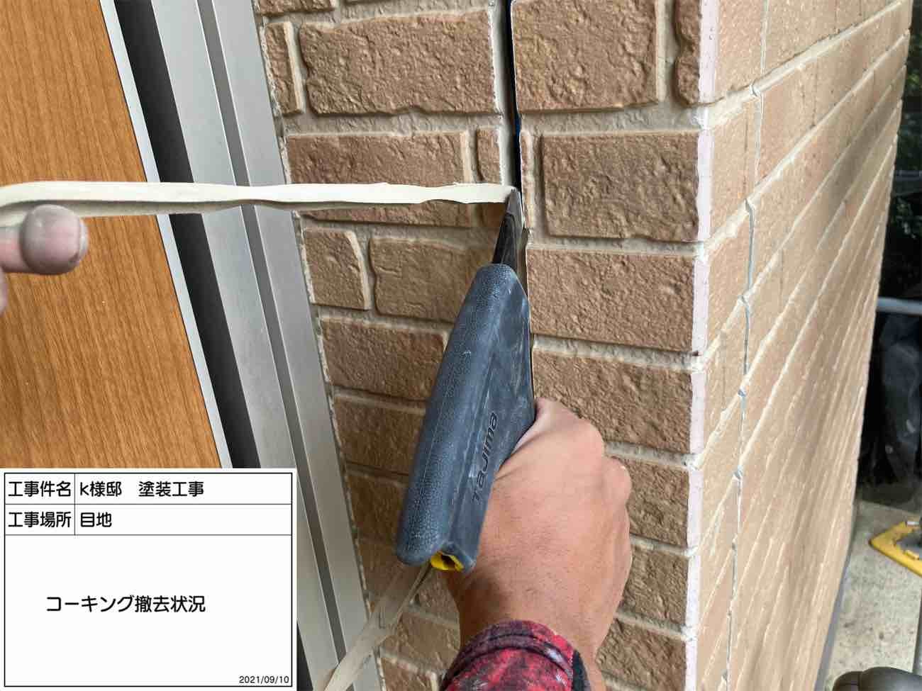 既存のコーキングを撤去していきます。