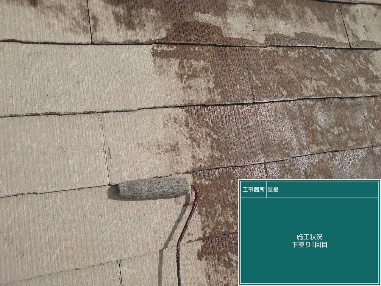 下塗り2回目です。塗料の吸い込みが激しくなってしまうため下塗りを塗り密着性を確り高めていきます。