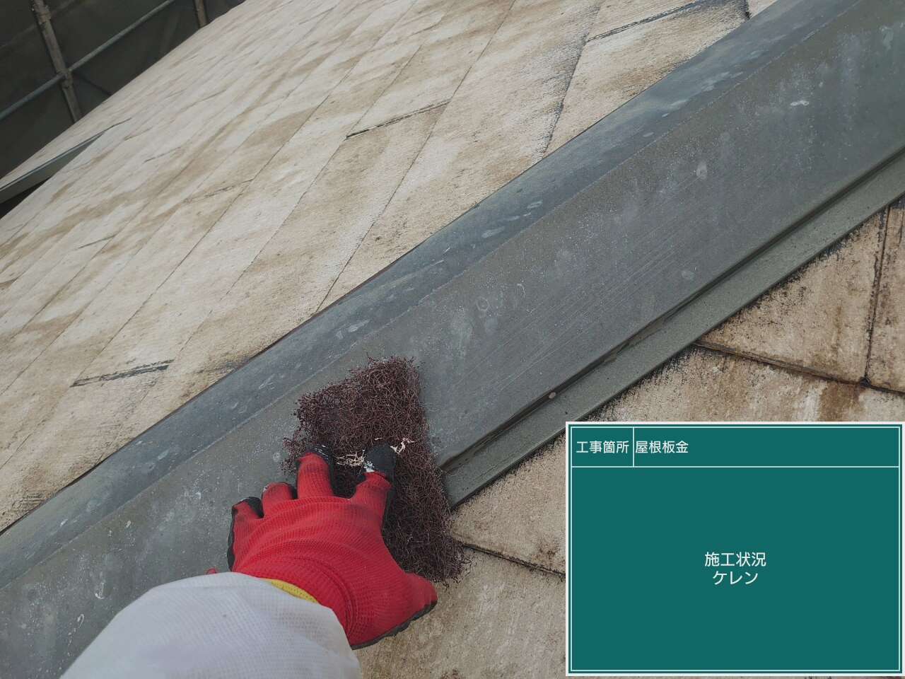 ケレン作業では鉄部の塗装面についた古い塗膜やサビを除去していきます。