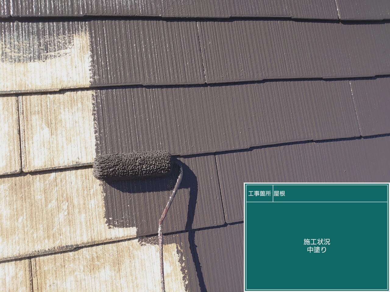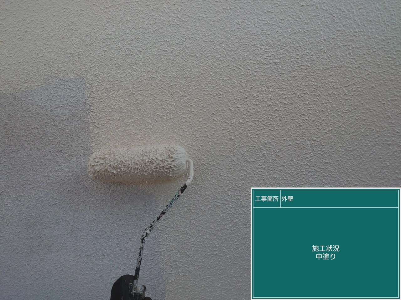 中塗り作業です。上塗り1回目とも呼ばれお客様がお決めになったお色味を塗布していきます。