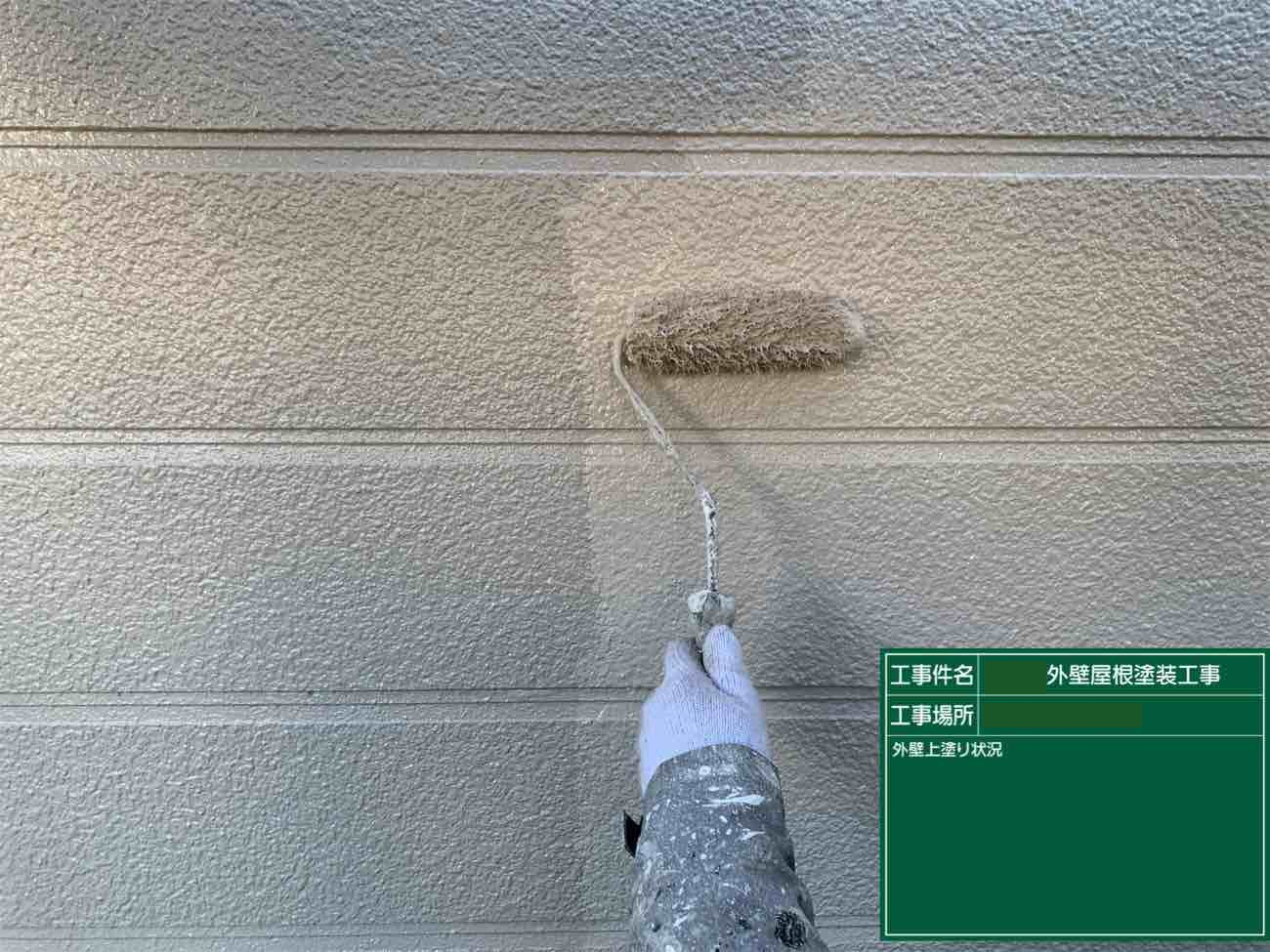最後は上塗り塗装。上塗りで仕上げていきさらに厚みを出し紫外線などから外壁を守ります。ビフォーアフターはトップを見て頂けたらと思います!
