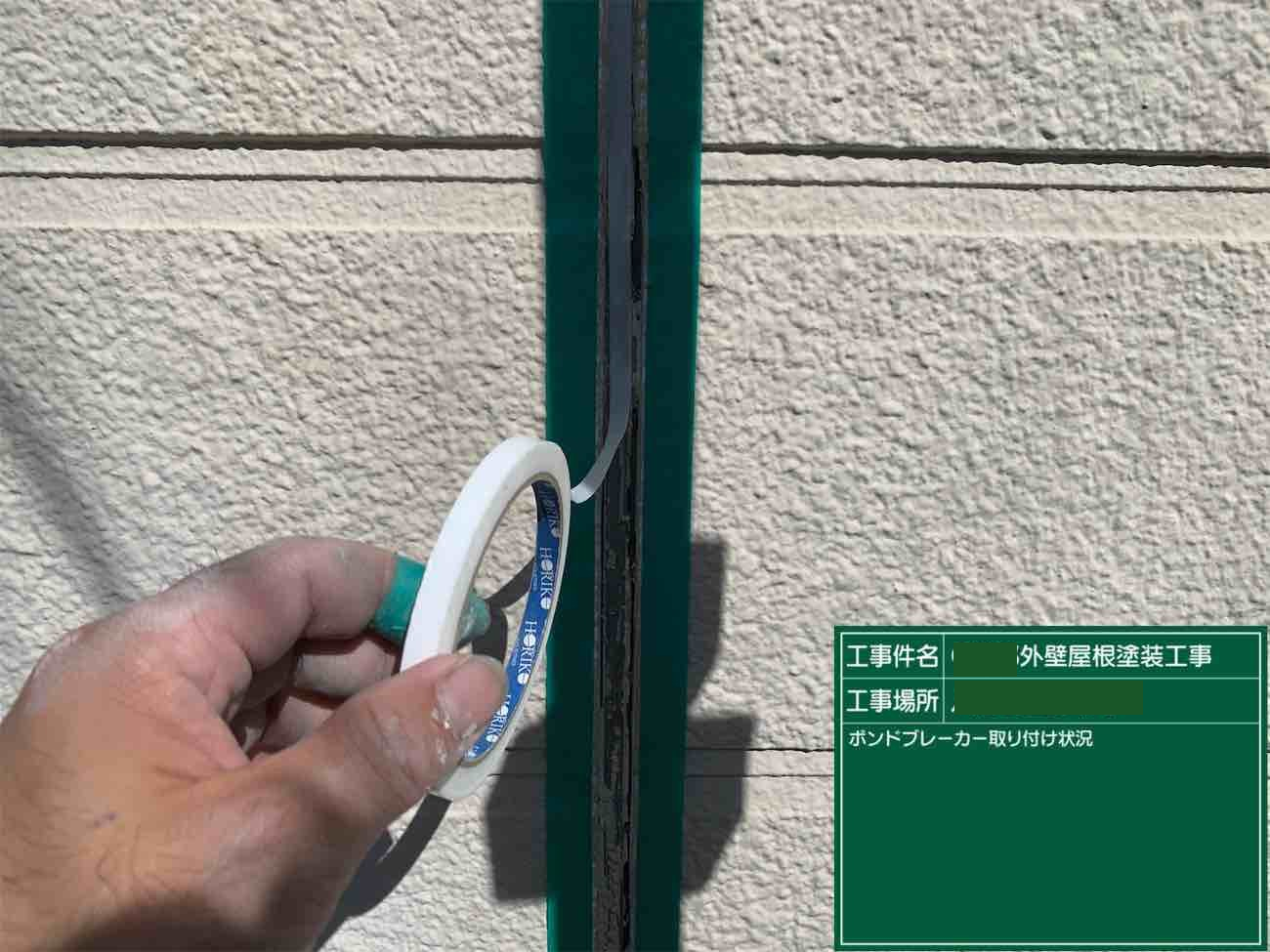 撤去したら目地底にボンドブレーカーを接着していきます。