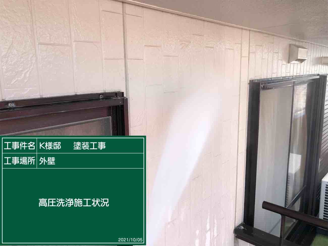 外壁も同様、高圧洗浄作業で汚れを落としていきます。