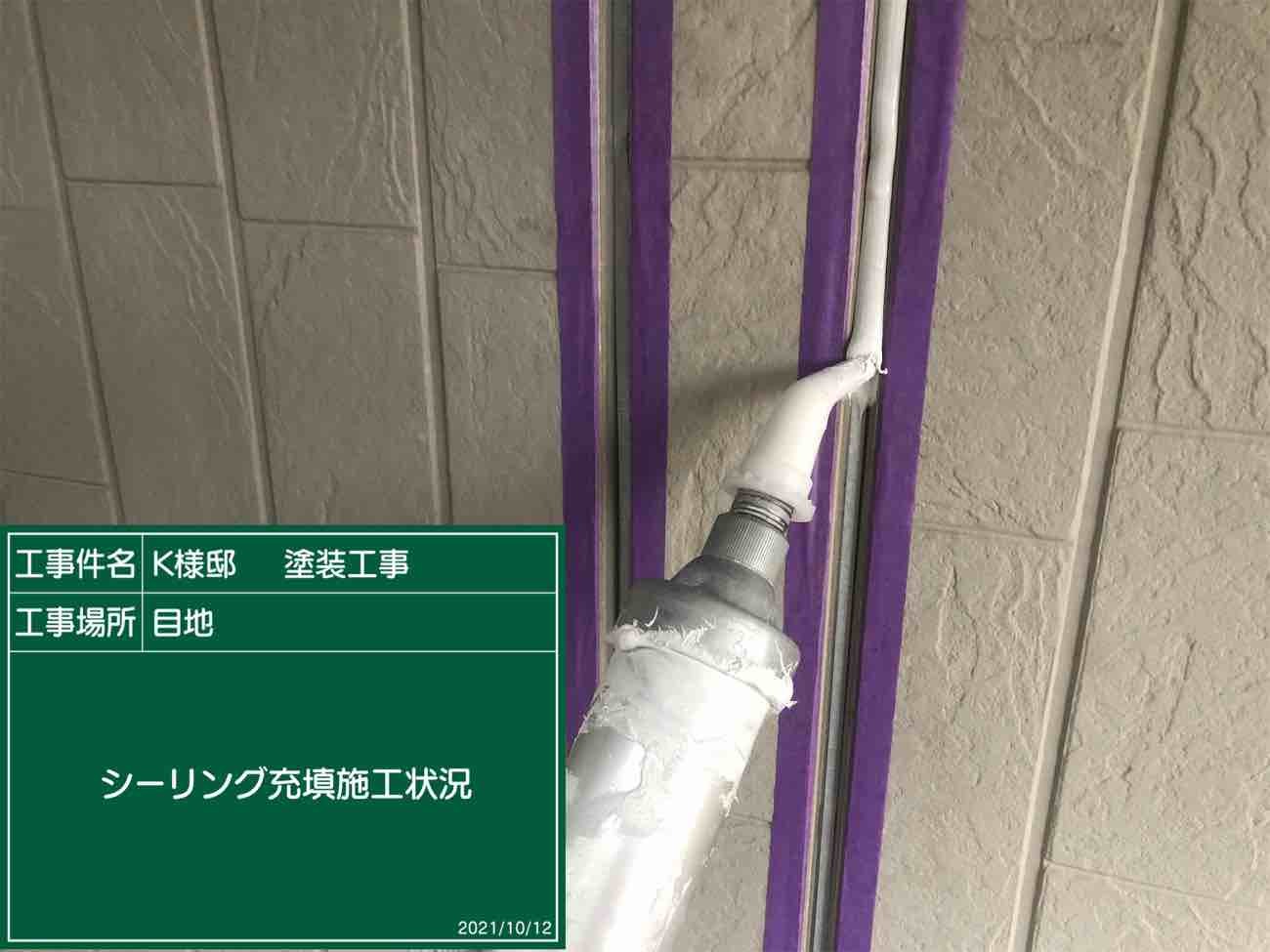 外壁は塗装工程に入る前に、シーリングの打替え作業を行います。