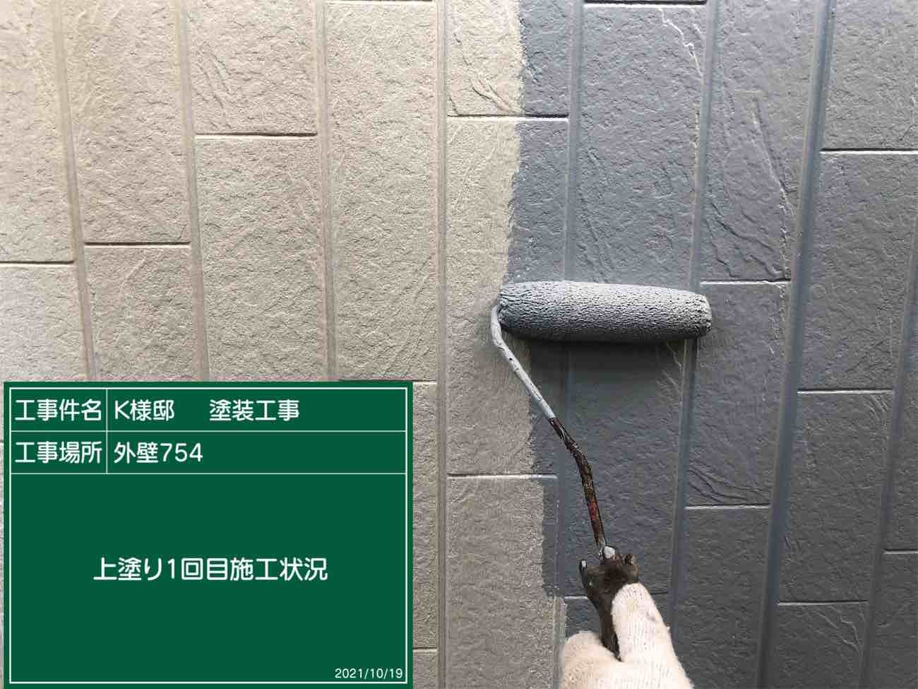 上塗りです。中塗りの時と同じ塗料を使用していきます。 美観にも関わる最後の工程です。