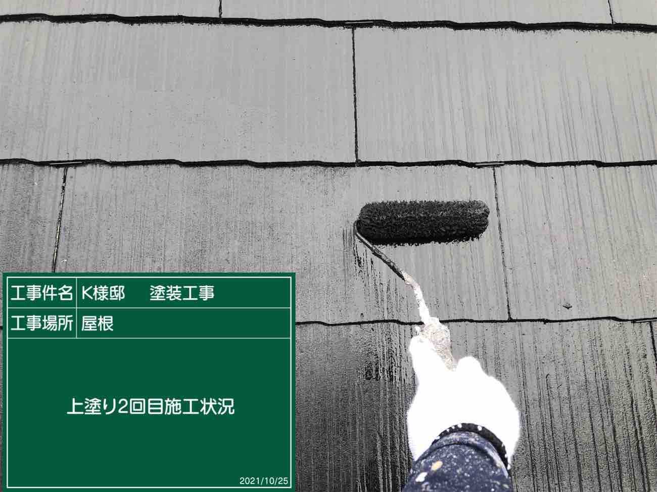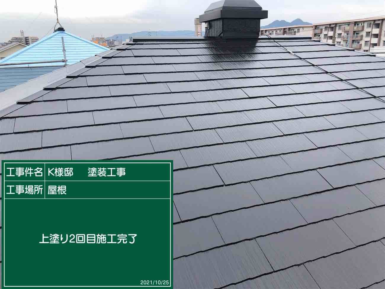 これで屋根塗装が完了です。 上塗りは美観にも関わるためより丁寧に塗布しました。