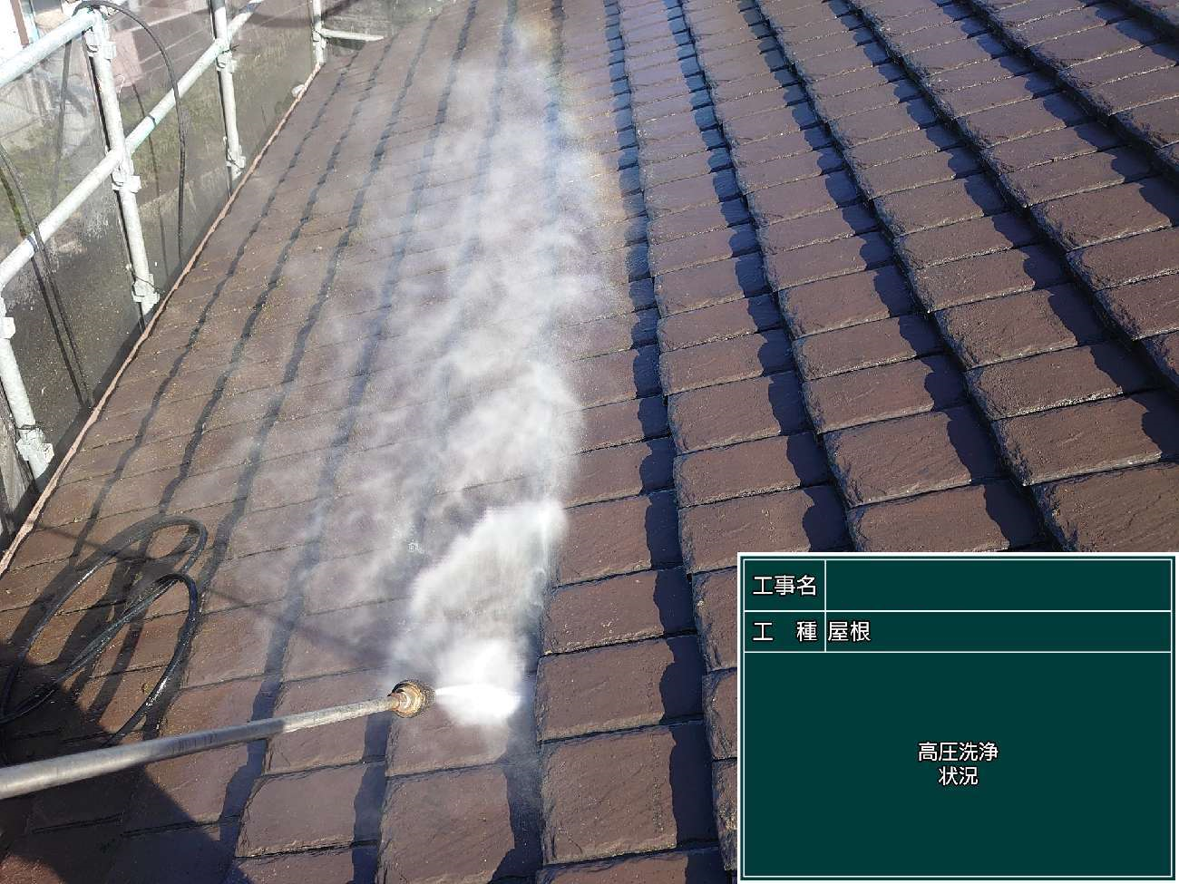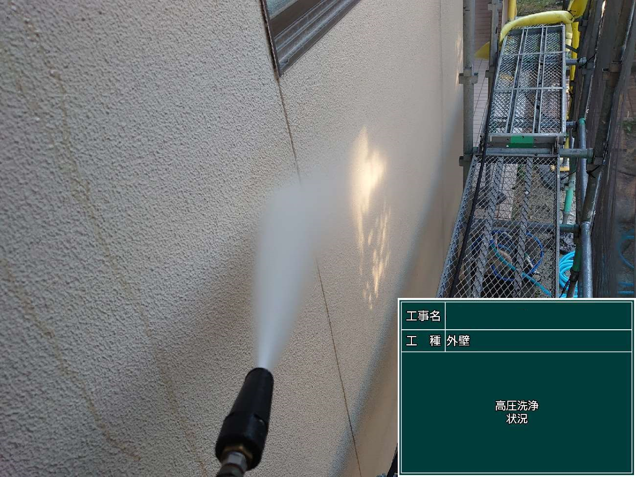 まずは高圧洗浄作業で表面についた細かな汚れまで落としていきます。