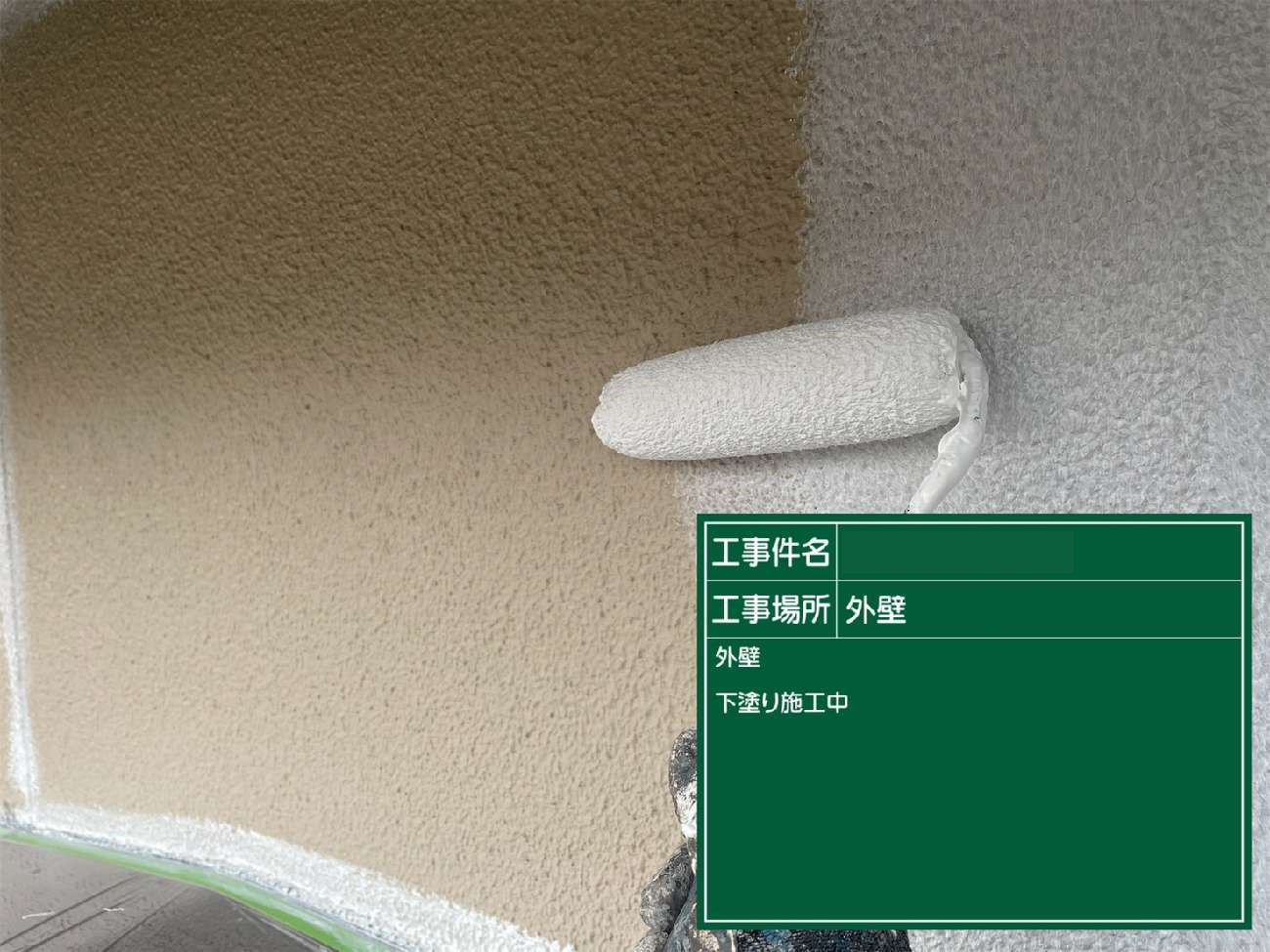 下塗りは白を使用します。下塗りは非常に重要な塗装工程で ・外壁塗装をキレイに仕上げる ・外壁塗装の耐久性を担保する という役割があります。