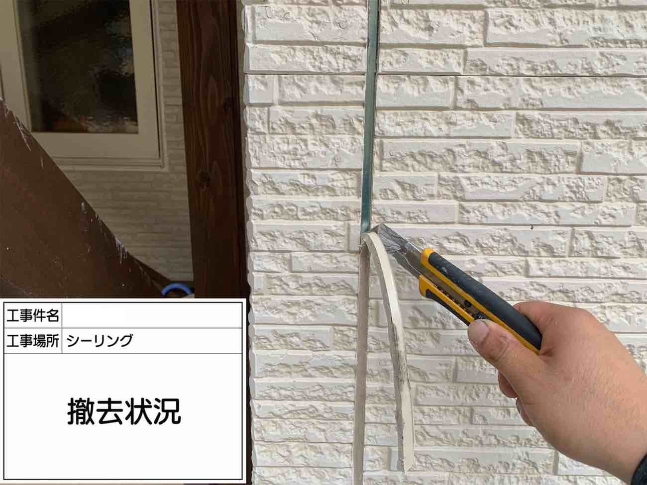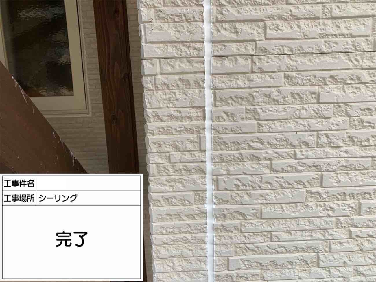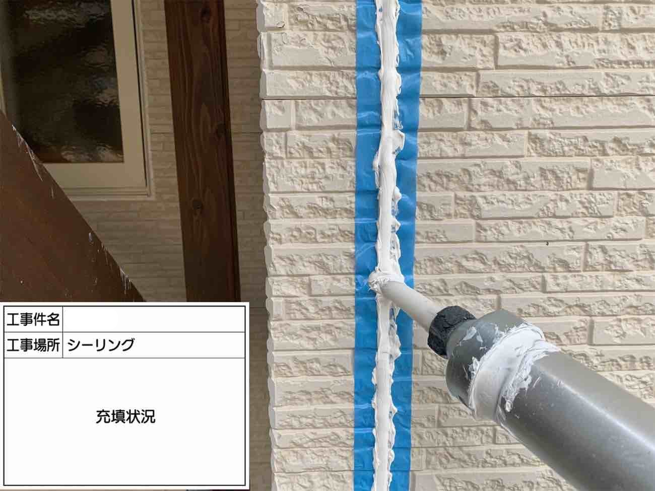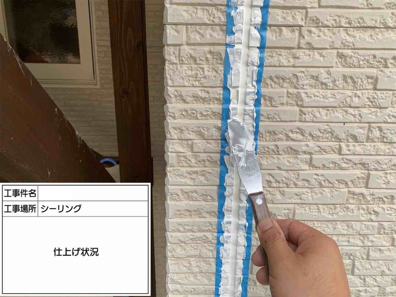 充填したシーリング材を綺麗にならしていく仕上げ作業です。