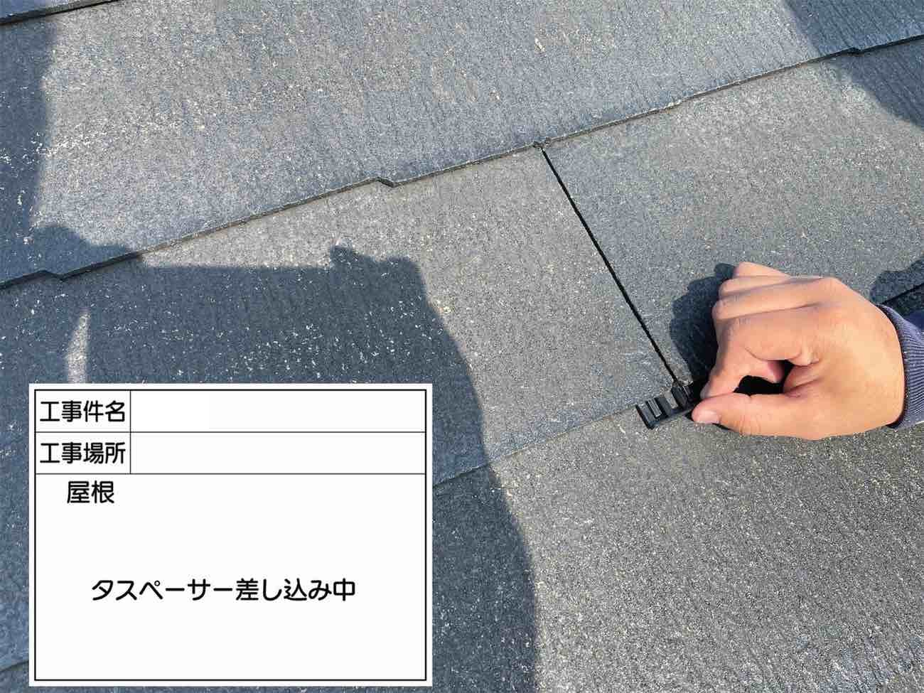 一つ一つ手作業でタスペーサーを取り付けていきます。 雨漏りを防ぎ、また屋根の美観を保つことができます。