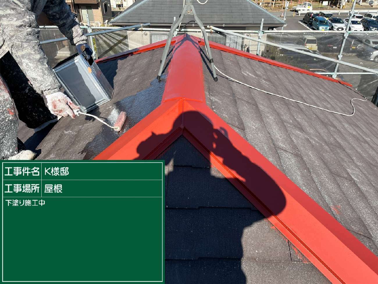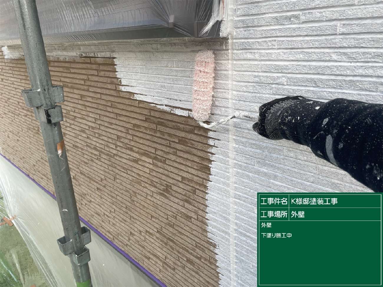下塗り塗料を塗布し、下地を整えていきます。 -