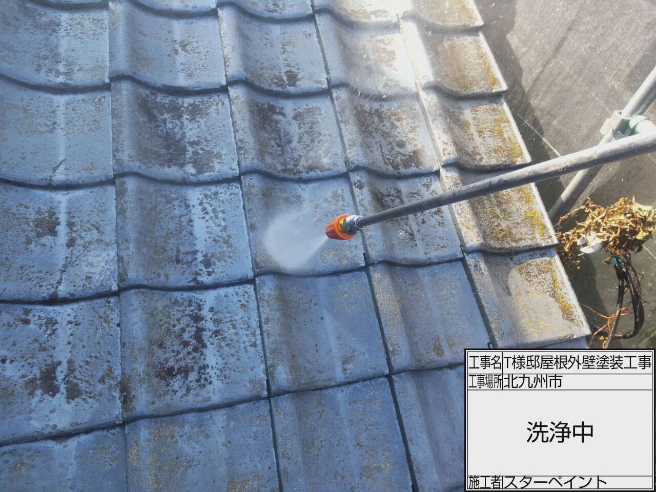 次に外壁の高圧洗浄を行います。この作業で細かな汚れも落としていきます。