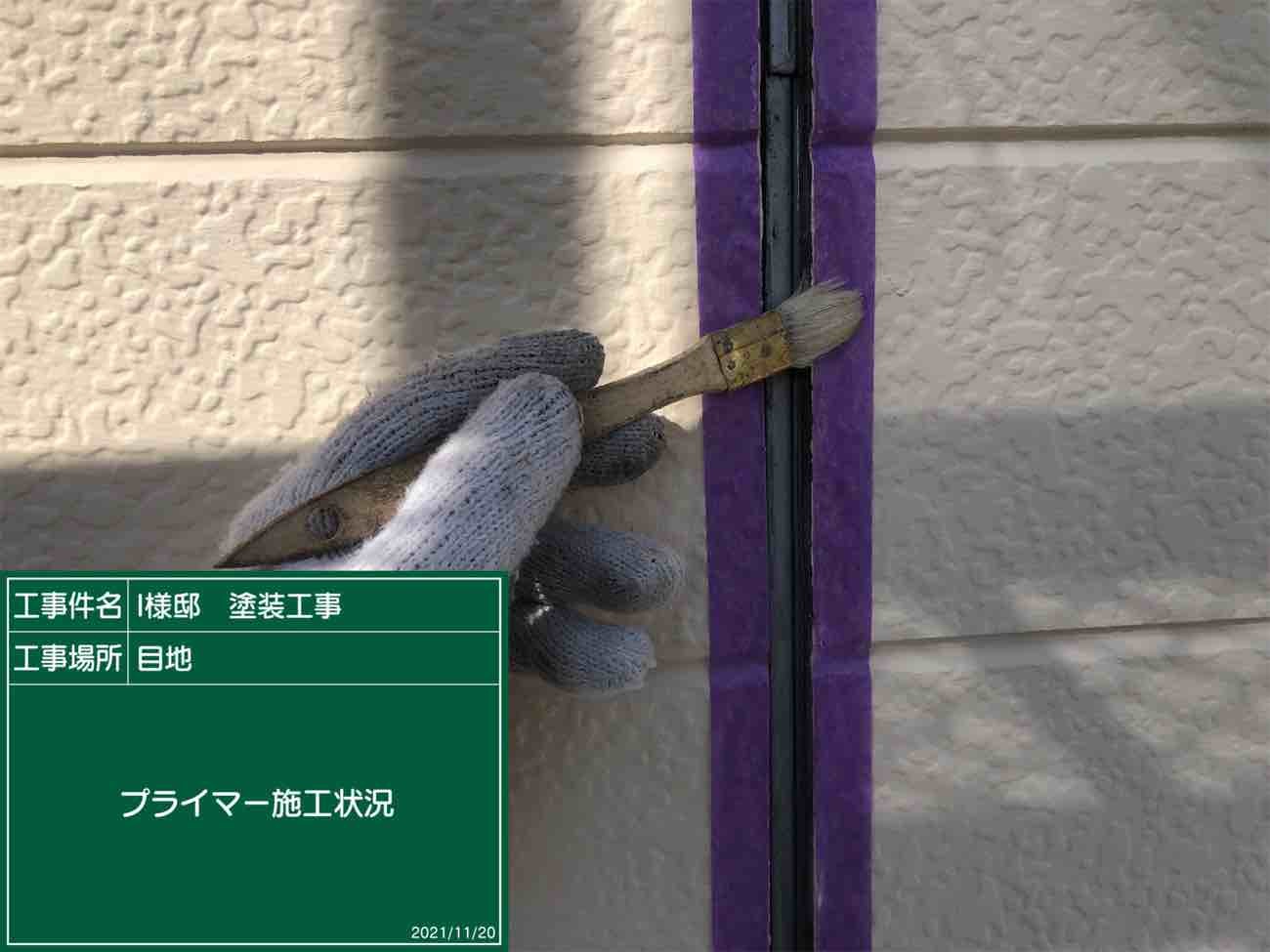 塗布が完了したら、ボンドブレーカーを目地の底に塗布します。