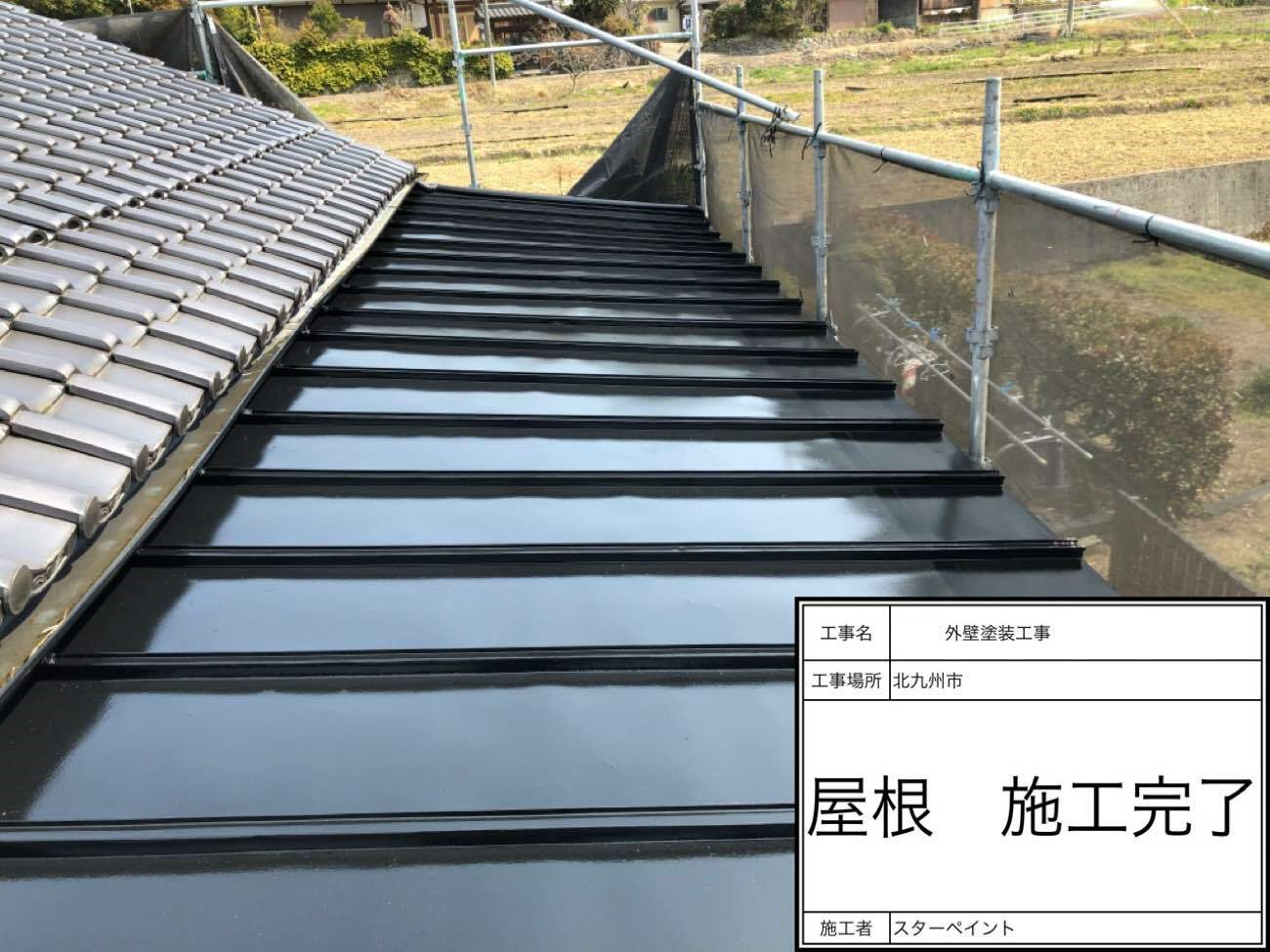 中塗りと同じ色を塗布し、塗膜に厚みを出していきます。 これで屋根の塗装作業が完了です。