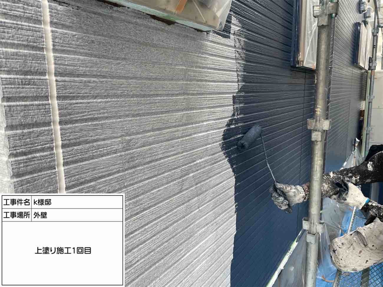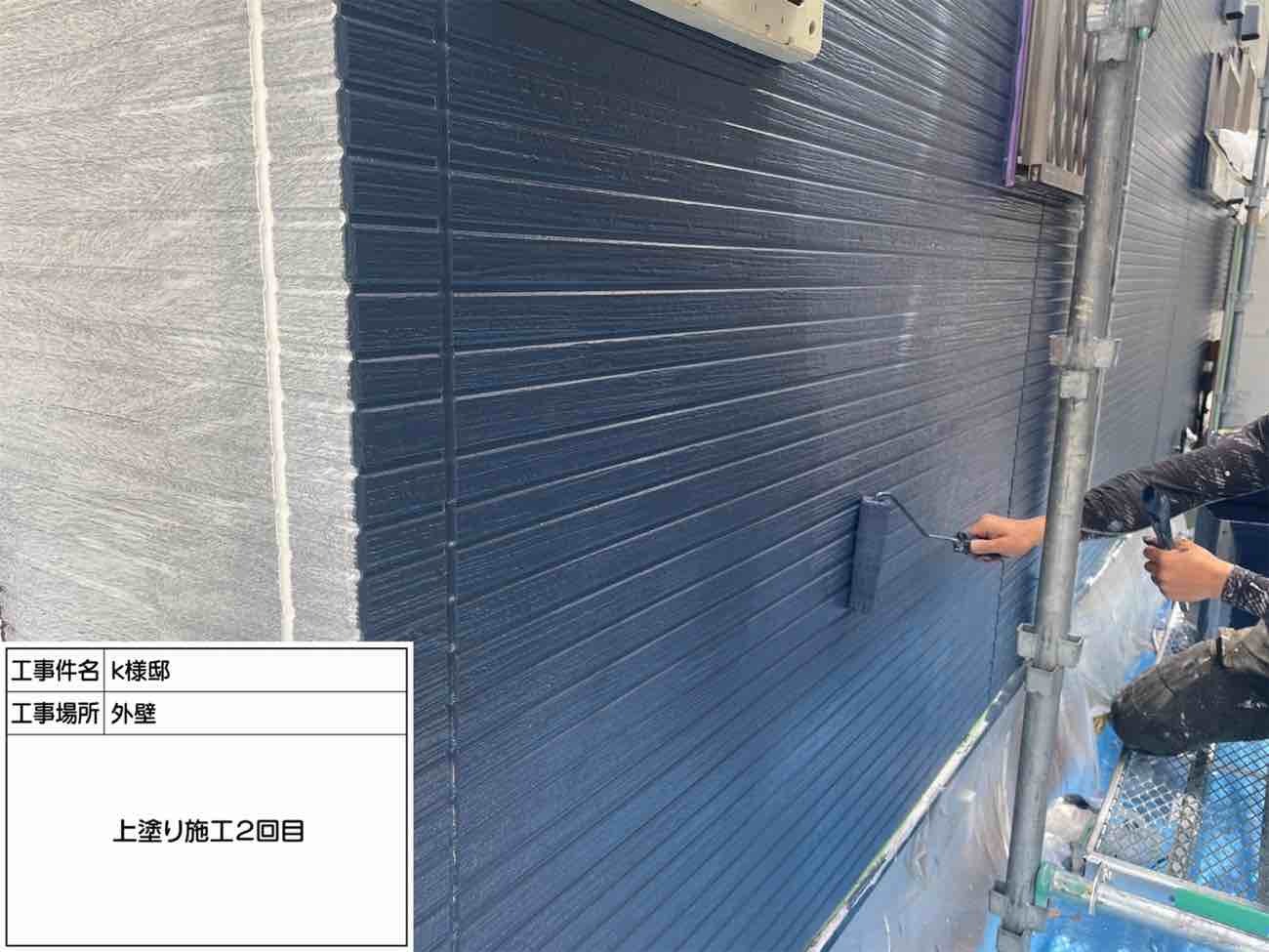 上塗りは二回行うことで塗膜を安定させ、紫外線などから外壁の基材自体を守っています。