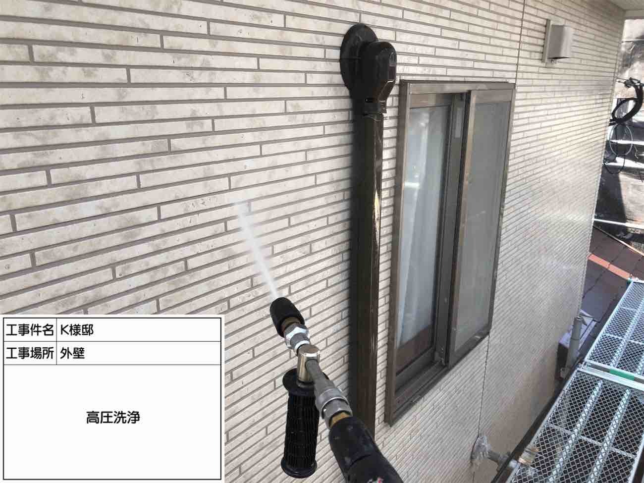 塗装工事で欠かせないのが、洗浄作業です。 元々基材に付着している汚れなどを落としてから塗装工事の工程に入っていきます。