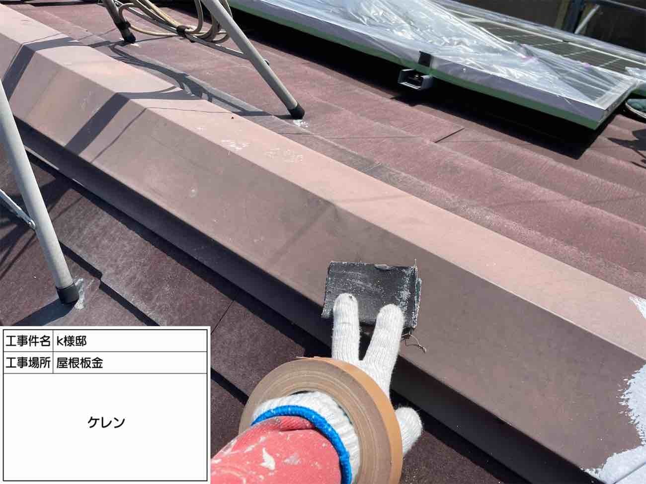屋根の塗装に入っていきます。 まずは屋根の板金部分の錆びや汚れを削る、ケレン作業を行います。