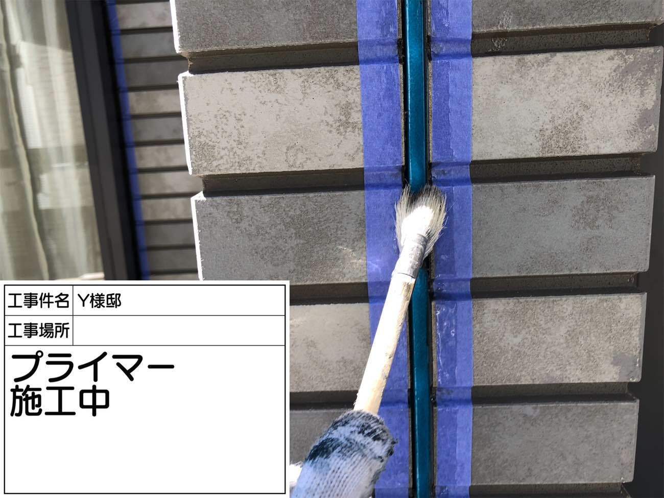 新しいシーリング材を打ち込む前に、下地材となるプライマーを塗布します。