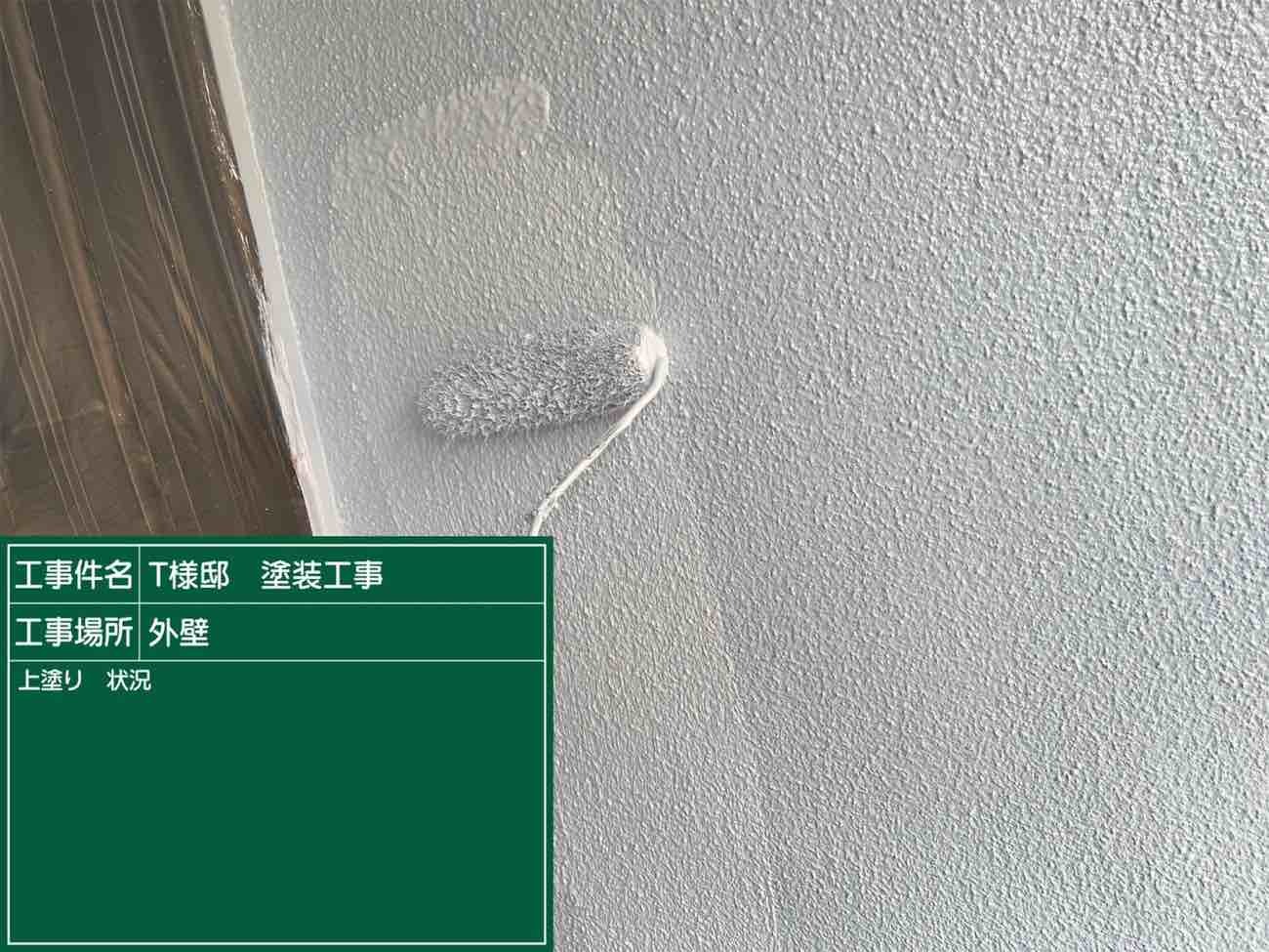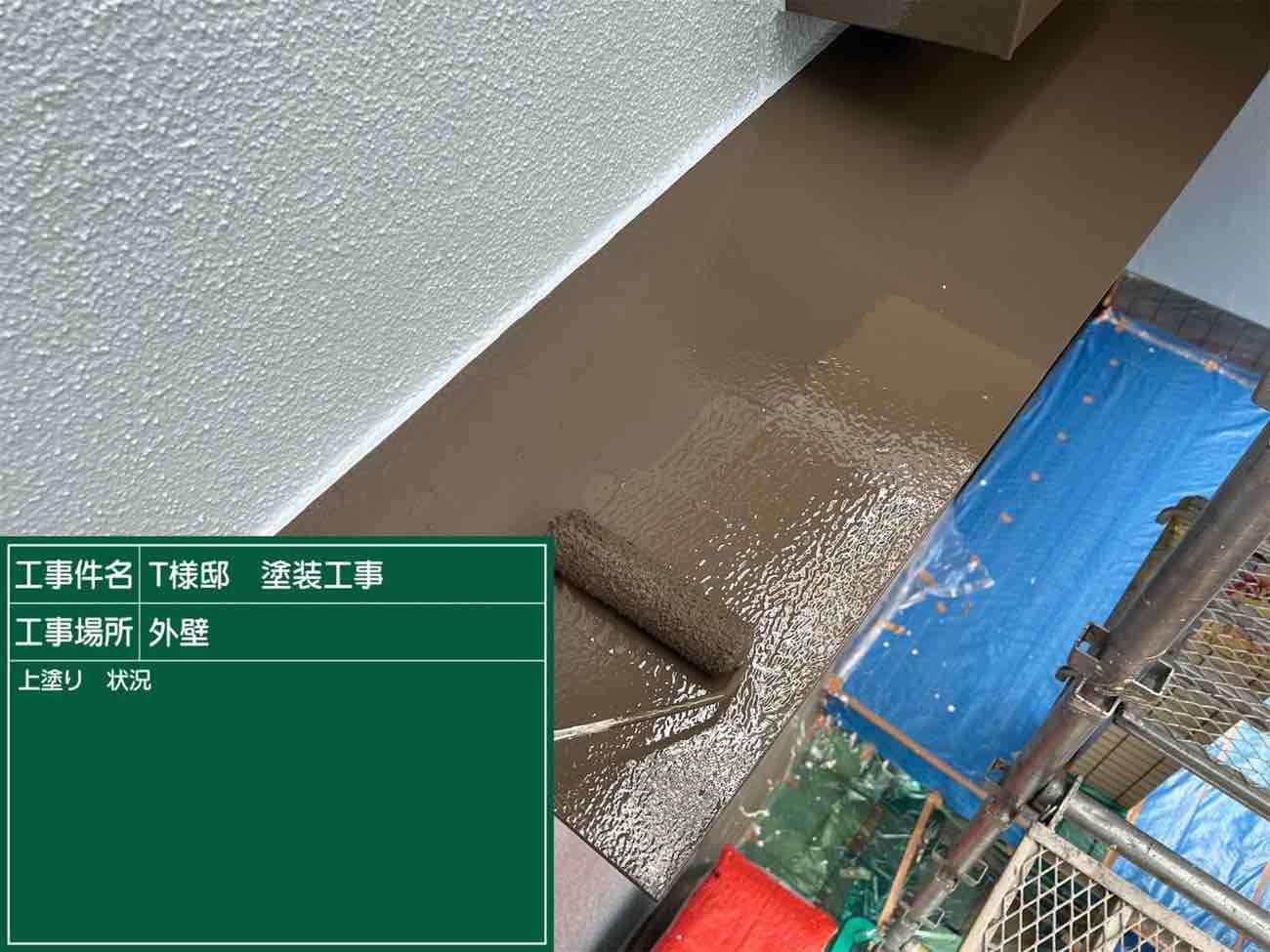 2回目の塗装を行い、塗装を整え仕上げていきます。 外壁だけでなく、付帯部の塗装もしっかり行いお家を守っていきます。