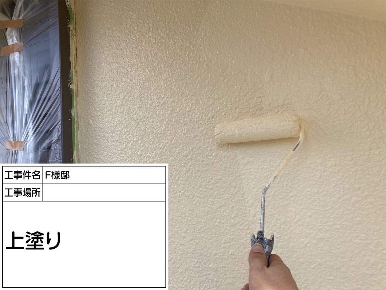 中塗り工程です。 塗膜に厚みを持たせ、耐久性や美観を高めます。