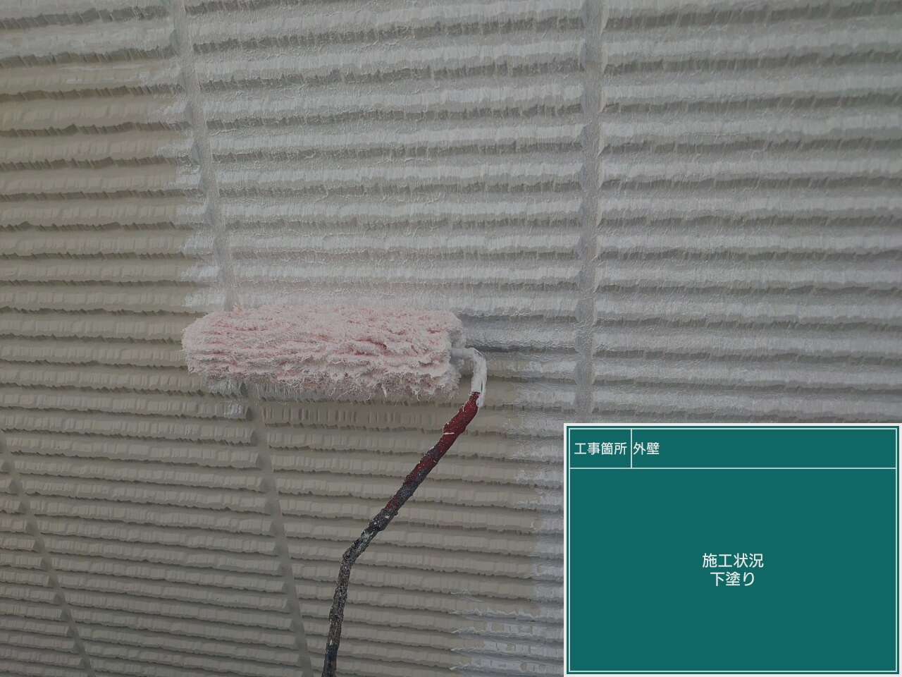 外壁の下塗り作業で中塗りとの密着度を高めます。