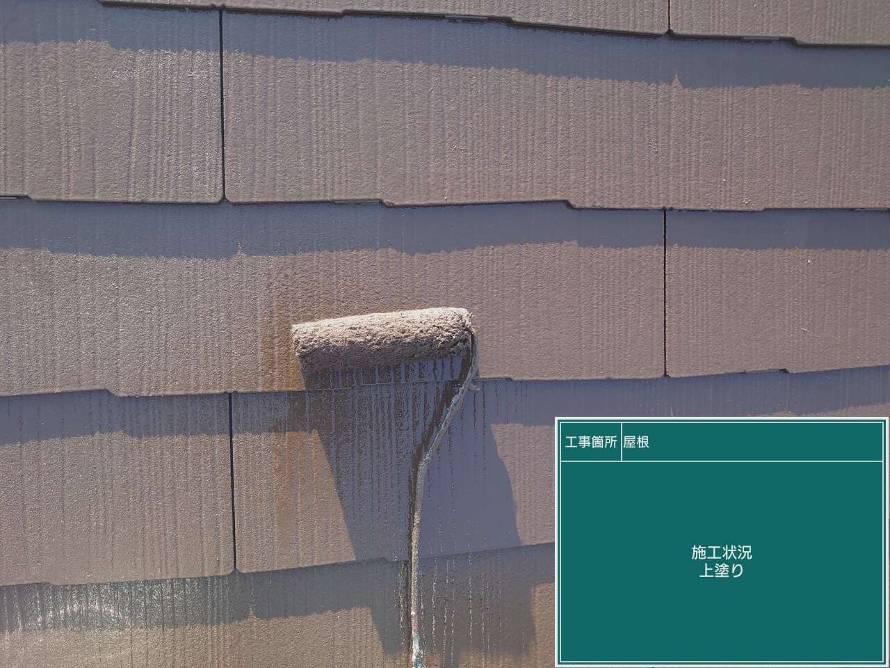 最後に上塗り塗装作業を行っていきます。 屋根も雨や紫外線から守るためしっかり塗装をしていきます。