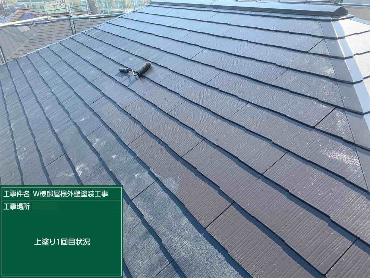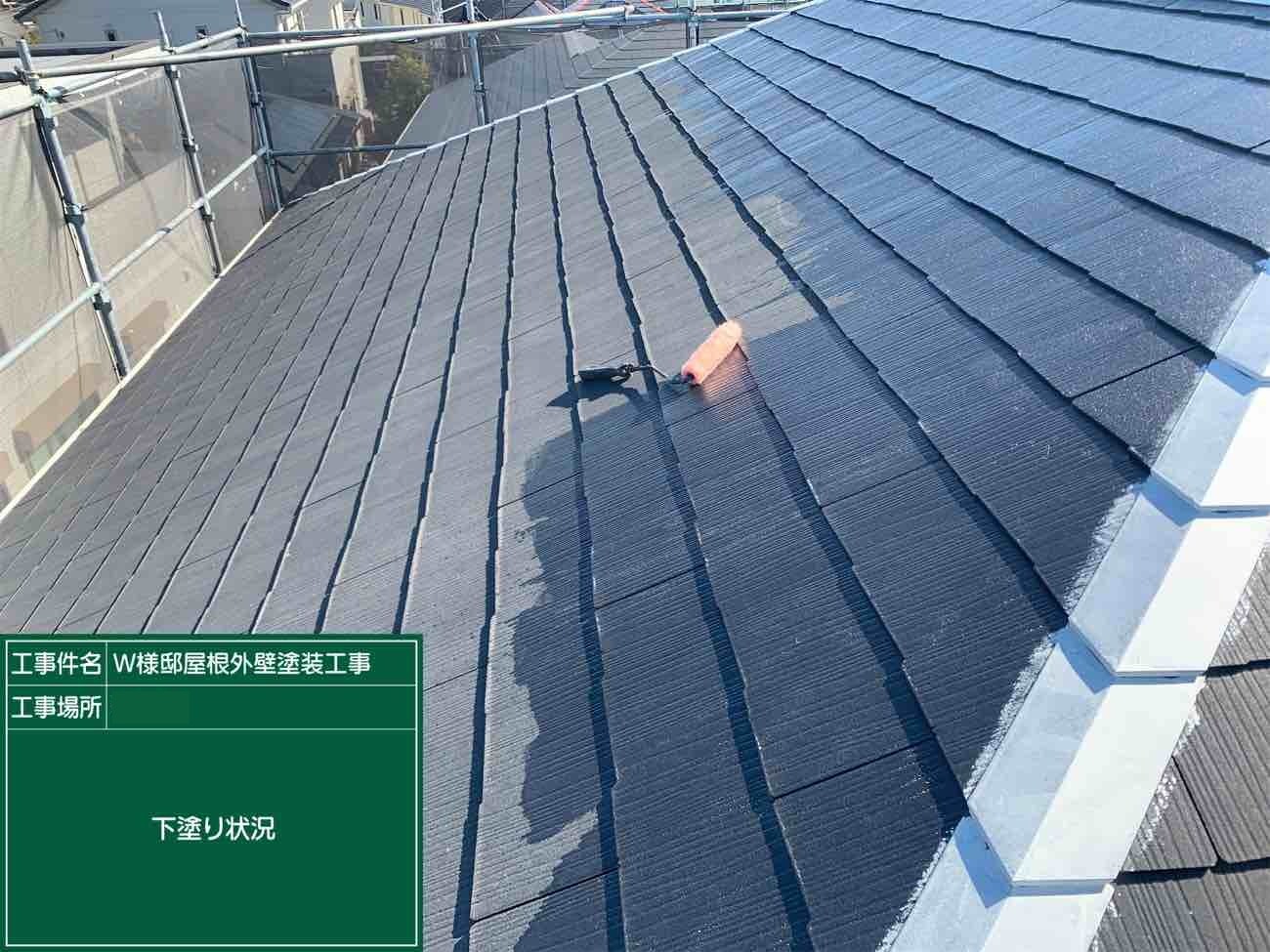 屋根も同様に3回塗りを行っていきます。こちらは下塗り作業の様子です。
