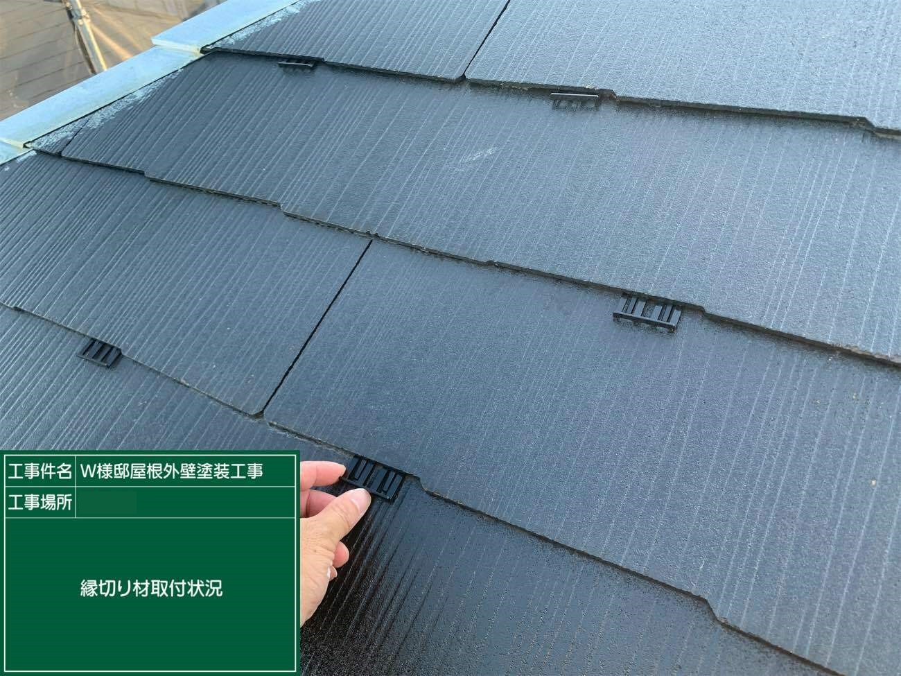 屋根材の間にタスペーサーを取り付けていきます。縁切りの役割を担っています。