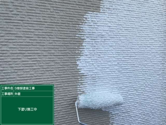 塗装工事で重要と言われる下塗り工程です。 下塗り工程の仕上がりが耐久性・美観とともに大きく影響します。