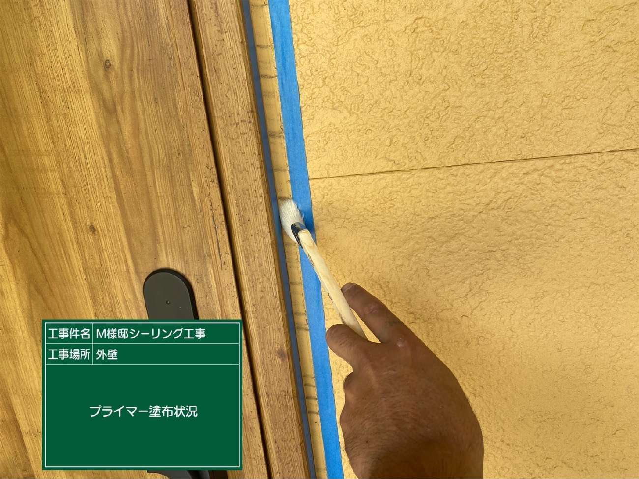 新しいシーリング材を打ち込む前に、下地材となるプライマーを塗布していきます。