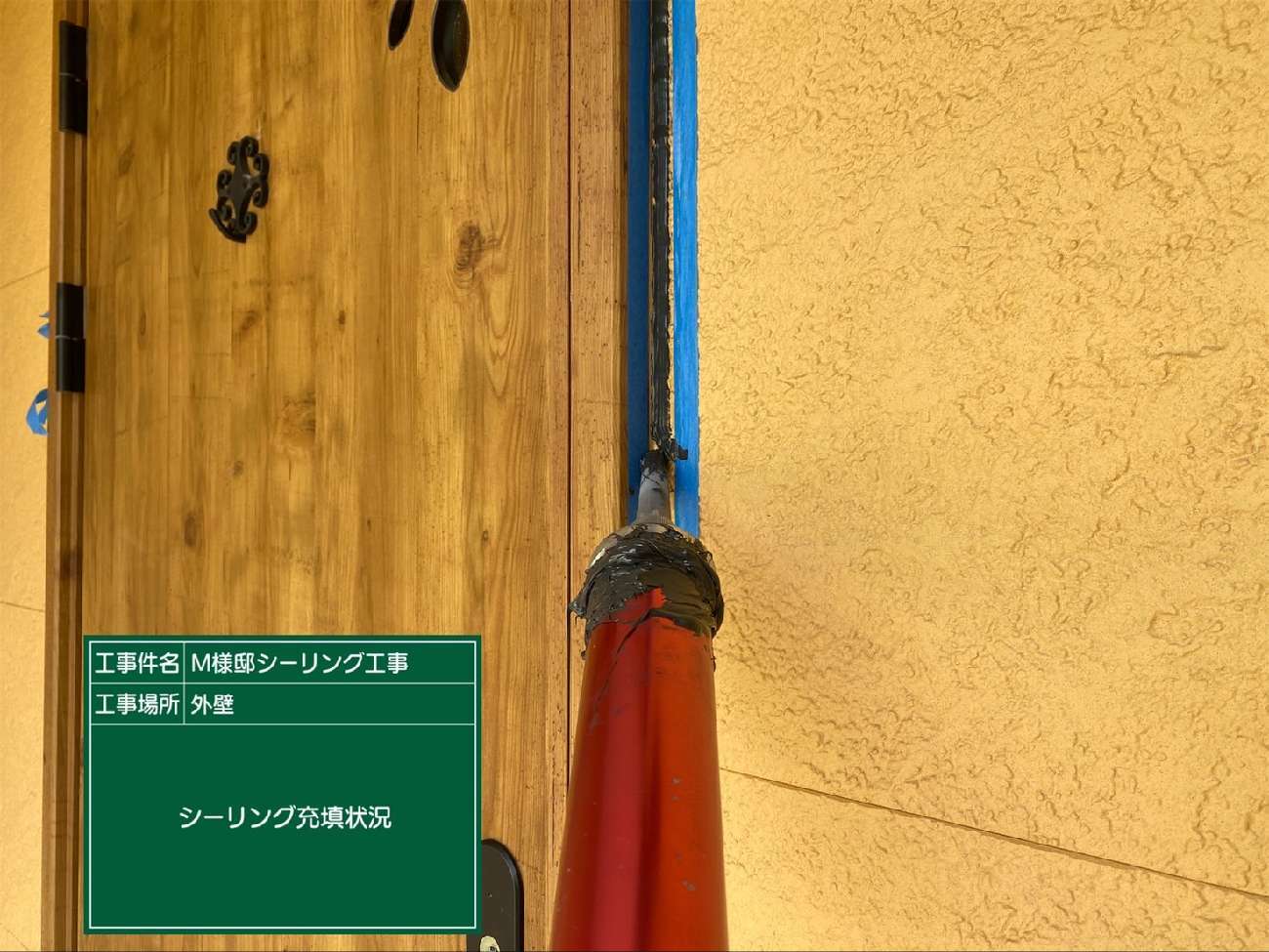 新しいシーリング材を充填していきます。 隙間がないように丁寧に打ち込みます。