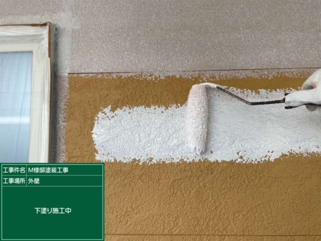 塗装工事で重要と言われる下塗り工程です。 下塗り工程の仕上がりが耐久性・美観とともに大きく影響します。