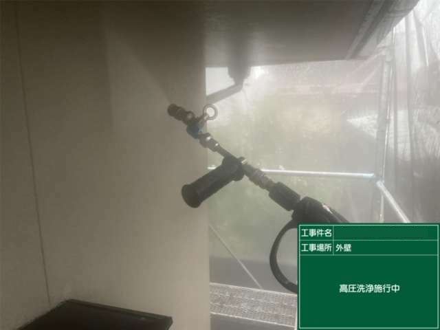 外壁も同じように洗浄を行っていきます。洗浄が完了したら乾燥させていきます。