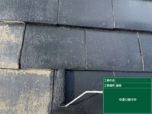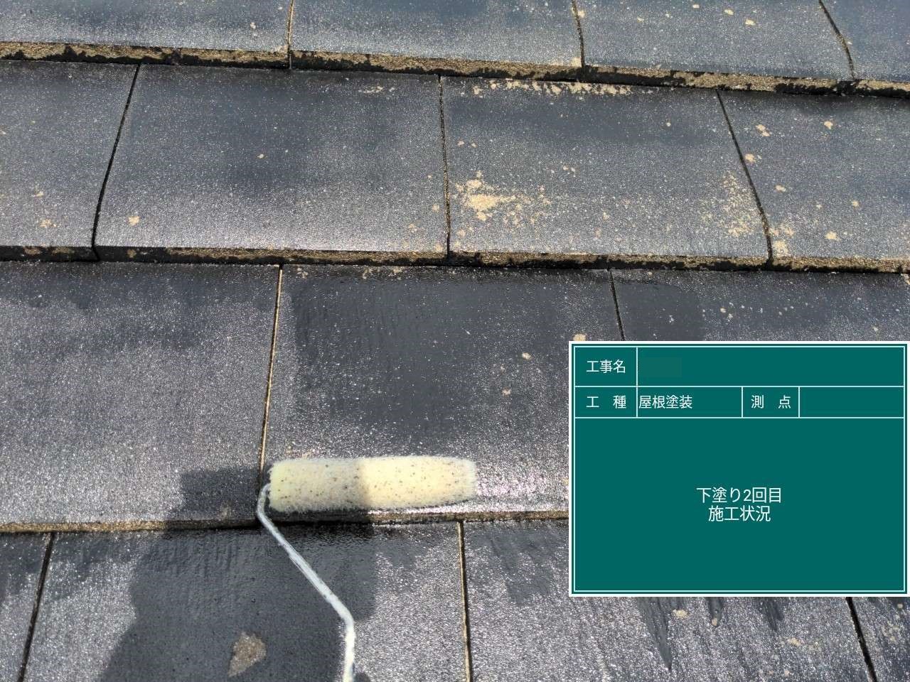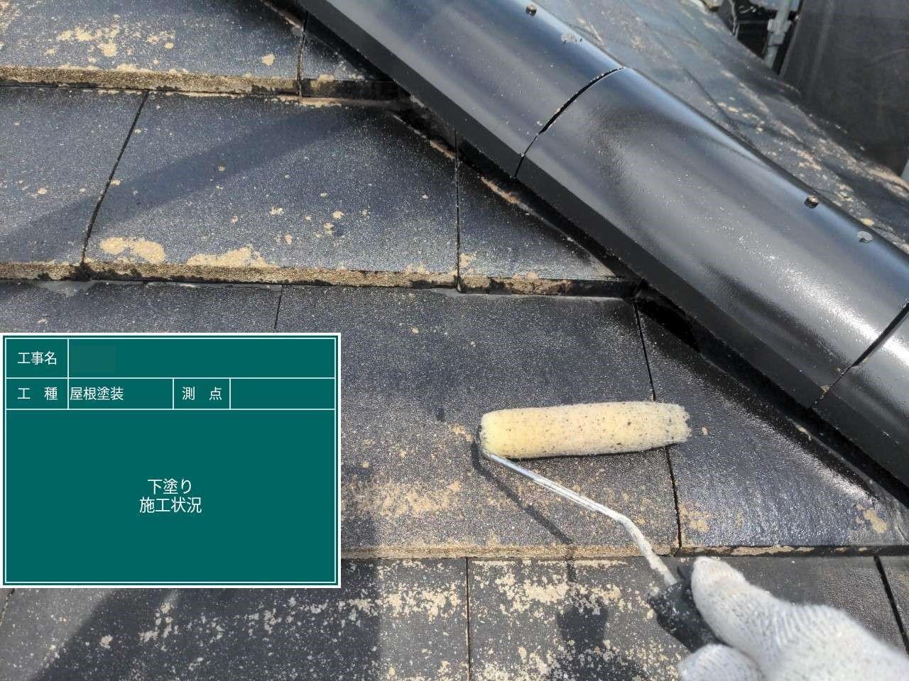 屋根の塗装を行っていきます。今回屋根の劣化が進んでしまっておりますので下塗りを2回行います。