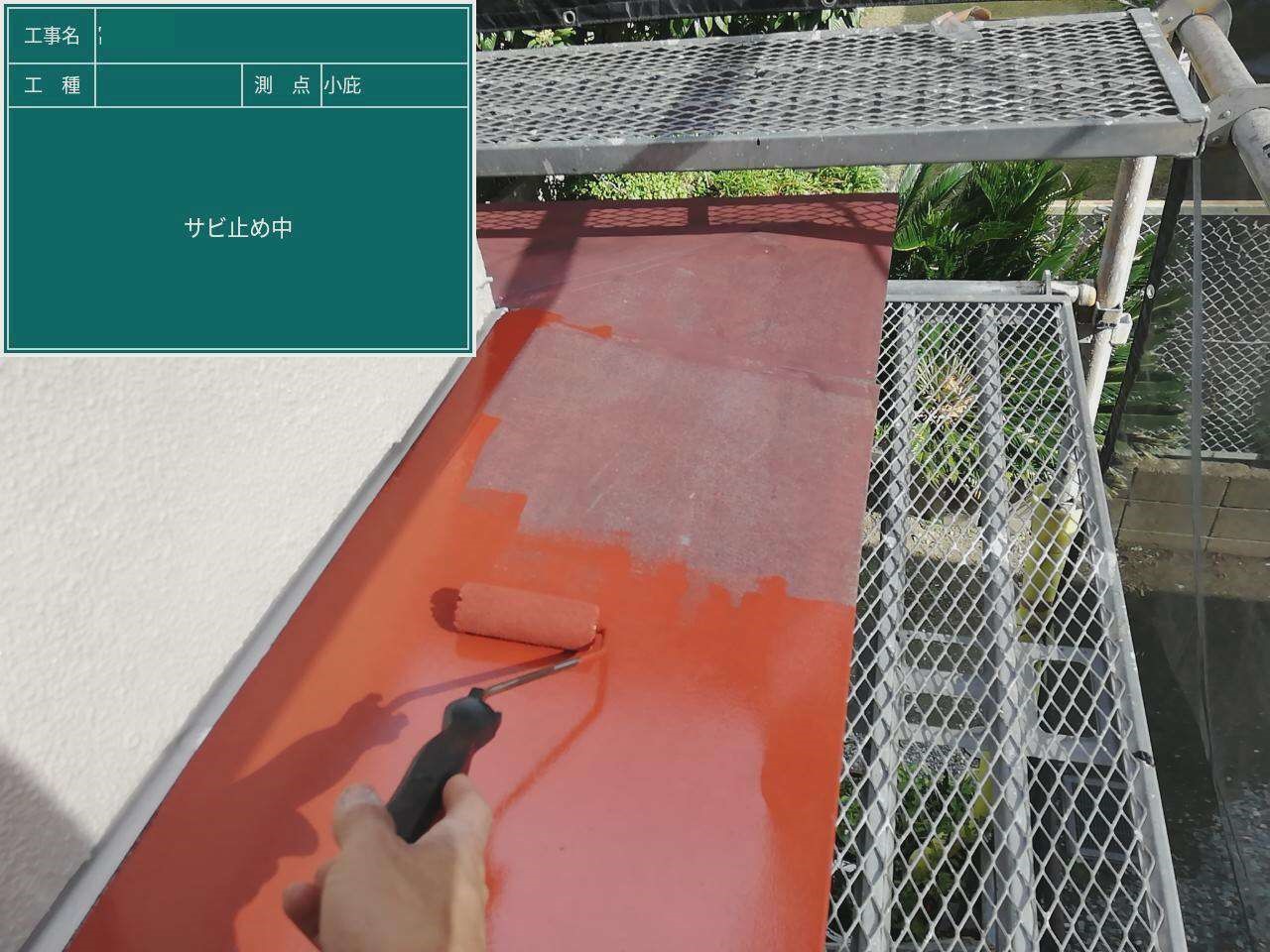 まずは、下塗り作業です。 上から塗っていく塗料と下地を密着させる役割をしています。