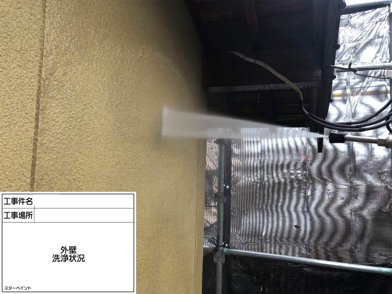 高圧洗浄で落ちなかった汚れを手作業で落としていきます。