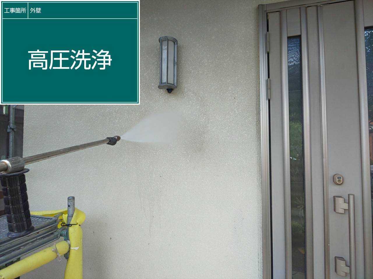 早速外壁塗装に参ります。今回外壁の劣化が激しかった為、下塗りを2回行います。下地が劣化していると、塗料の吸い込みが大きく上塗りの塗料が吸い込まれムラが出来るのを防ぎます。