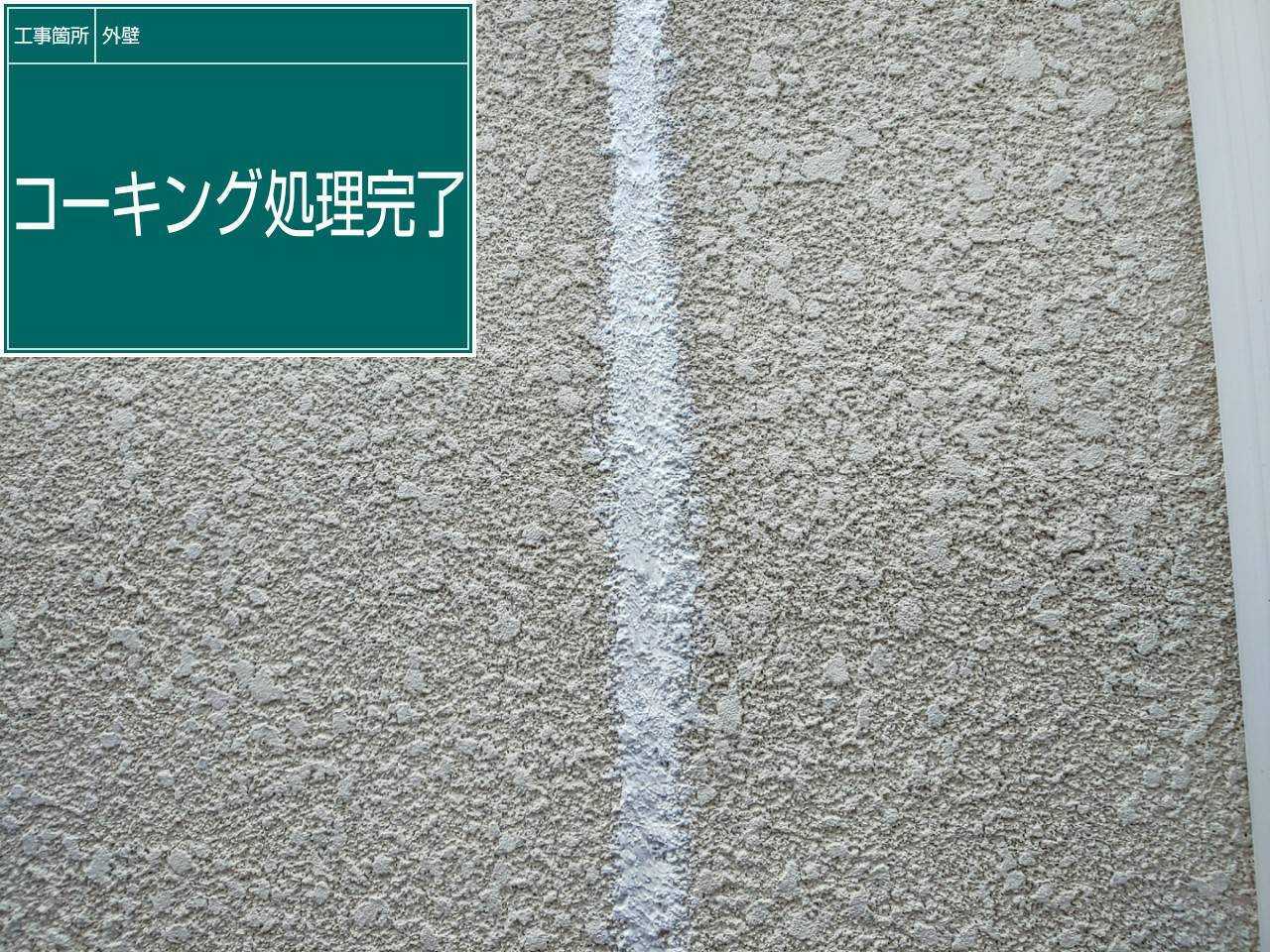 コーキング作業が完了しました。コーキングが劣化してしまうと隙間からの雨漏りなどの原因になってしまうため、初期段階の劣化状況から打替えするようにしておきましょう。