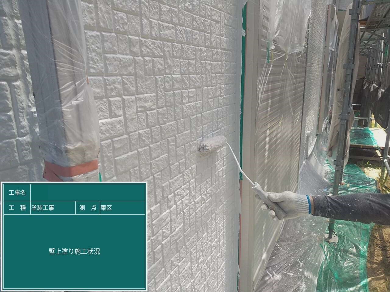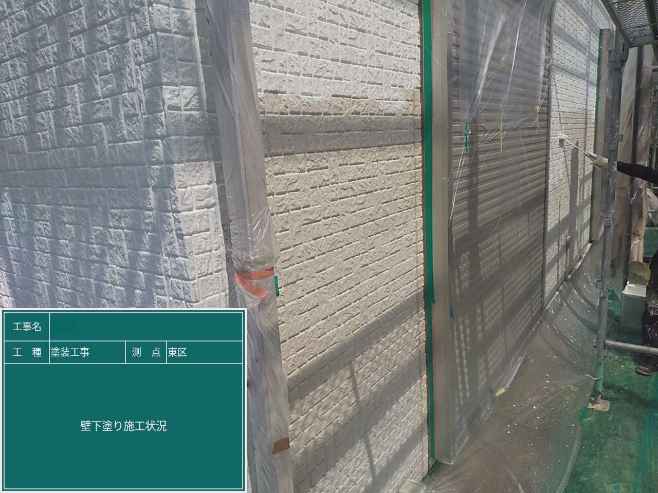 外壁の下塗り作業で中塗り塗料との密着度を高めます。 この工程で手を抜くと塗膜が剥がれる原因となりますので注意が必要です。