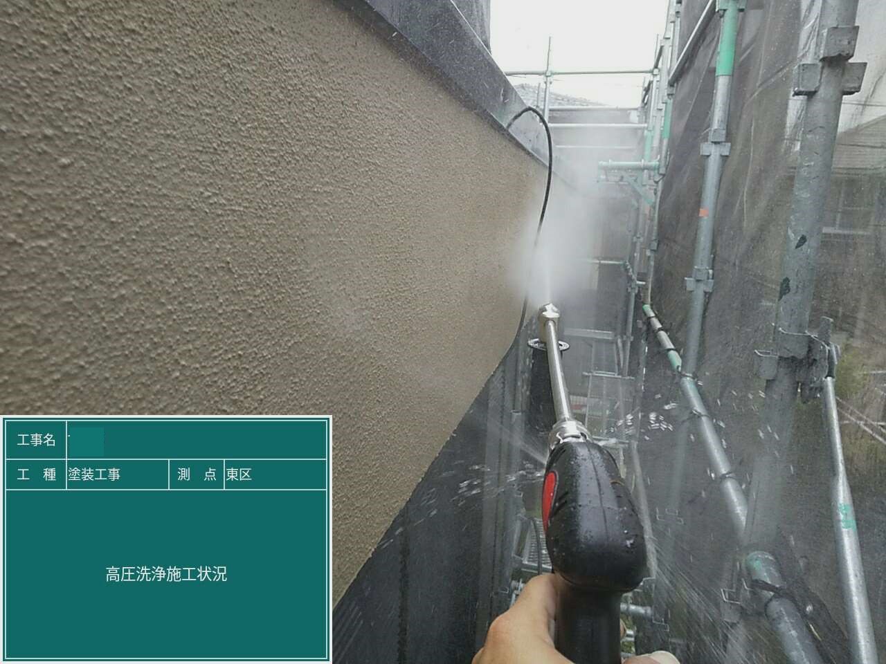 外壁についているコケ、汚れをしっかりと洗い流します。