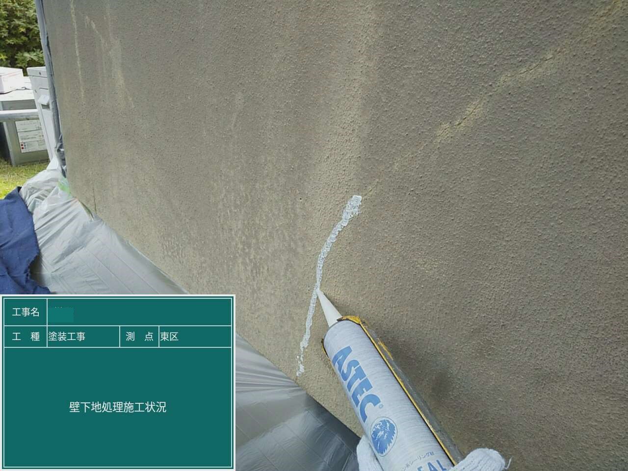 外壁のクラックを補修して塗料がのりやすい下地を整えていきます。